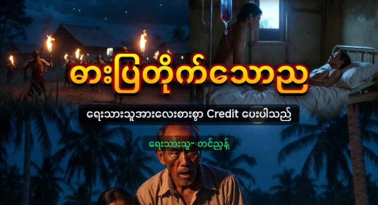 ကျေးရွာသမဝါယမအသင်းက ဆန်ခွဲတမ်းလာရင်လည်း ကျွန်တော်တို့ကျောင်းကို တစ်အိတ်ပေးမယ်လို့ ပြောထားတယ်” “ပိုက်ဆံပေးရမှာလားဆရာ” “ရွာကနှစ်ပြည်ထောက်ပံ့တာကတော့ ပေးစရာ မလိုဘူး … သမဆိုင်ကဆန်ရရင်တော့ ခွဲတမ်းအတိုင်း အစိုးရဈေးနဲ့ ပေးရမယ်” “ဒါလည်း သက်သာတာပဲဆရာ” “အေးဗျာ … နောက်တစ်ချက်က ခုတစ်လော ဓားပြစိန်လှံဗိုအုပ်စု ရွာနားကိုကပ်လာနေတယ်ဆိုတဲ့ သတင်းတွေ ကြားနေရတယ်။ မြို့ကိုလည်း လှမ်းပြီး အကြောင်းကြားထားတယ်။ ပြည်သူ့စစ်တွေလည်း ညဘက်ဆိုရင် ကင်းလှည့်မယ်။ ကျွန်တော်တော့ ဒီညကစပြီး ပြည်သူ့စစ်အဖွဲ့တွေနဲ့ လှည့်ကင်းလိုက်ဖို့ တာဝန်ယူထားတယ်။ ဆရာတို့ကလည်း ကျောင်းအနေနဲ့ အလှည့်ကျ လှည့်ကင်းမှာ တာဝန်ယူပေးပါ” “ဟုတ်ကဲ့ဆရာ စိတ်ချပါ … ကျောင်းအနေနဲ့ရော … ရွာအနေနဲ့ပါ ကင်းလှည့်ပေးပါ့မယ်” “ဆရာမတွေကတော့ သတိဝီရိယနဲ့ အိပ်ကြပေါ့ … အရေးအကြောင်းဆိုရင် သံချောင်းခေါက်ဖို့ မမေ့ကြပါနဲ့” ထိုညတွင် ဆရာကြီးသည် ပြည်သူ့စစ်အဖွဲ့ဝင်များနှင့်အတူ ရွာထဲကို ကင်းလှည့်လိုက်ရင်း မြောက်ပိုင်းကို ရောက်နေသည်။