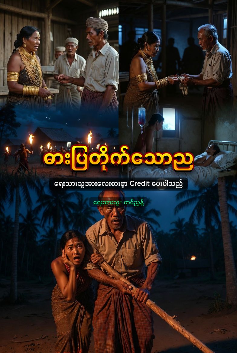 ရှေ့ကပြေးနေသူကျောကို ရိုက်ချလိုက်ချိန်တွင် ထိုသူက ဆရာမလေးကို ဆောင့်တွန်းကာထားခဲ့ပြီး ကိုယ်လွတ်ရုန်းပြေးသည်။ “ဒီမှာဟေ့ … ဆရာမလေးကို ထားခဲ့တယ် … ဆရာမ … ဘာဖြစ်သွားလဲ … ဘာလုပ်သွားလဲ” “ဘာမှ မလုပ်သွားဘူး …” “ပစ္စည်းတွေရော” “မထားခဲ့ဘူး … ယူသွားကြတယ်” “တော်သေးတာပေါ့” “ဟေ့ … စိန်အိုးကိုတင်ဖို့ ရွာကလှည်းသွားယူ … ဆေးရုံတင်ရမယ်” ဓားပြတွေကား လွတ်သွားသည်။ စိန်အိုးကို ဆေးရုံတင်ရသည်။ စိုးရိမ်ရသည်။ ဗိုက်ကိုလှံနှင့်ထိုးလိုက်သဖြင့် အူတွေထွက်ကာ ချုပ်ထားရသလို သွေးလည်း သွင်းနေရသည်။ စိန်အိုးသွေးက ကျောင်းအုပ်ဆရာကြီးသွေးနှင့် တူနေသောကြောင့် သွေးလှူ နေရသည်။ တစ်ညလုံး စိန်အိုးကို စောင့်ကြည့်နေကြရသည်။ မိုးလင်းခါနီးမှ အဘစိန်သောင်းက “ဆရာကြီး ပြန်နားဦးလေ” “အေးဗျာ … နားဦးမယ် … ဟိုဆရာမ သားအမိကိုလည်း လိုက်ပို့ရဦးမယ်” “ဆရာကြီးရယ် … တစ်ယောက်ယောက်ကိုပဲ ပို့ခိုင်းလိုက်ပါ” “လူနာတင်လာတဲ့လှည်းကို ကျွန်တော်ယူသွားမယ်အဘ … ကျွန်တော် ပြန်ပို့ပေးရမှာ တာဝန်ရှိတယ်။ သူတို့ ရွှေတွေ ပါသွားတာတော့ စိတ်မကောင်းဘူး … သူမလုပ်ချင်ဘူးဆိုလည်း မတားတော့ပါဘူး … ကျွန်တော်တို့ရွာ အခြေအနေက နေခိုင်းဖို့လည်း မပြောဝံ့တော့ဘူး”