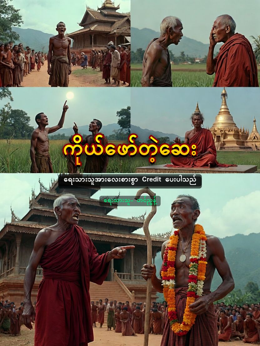 ရွာထဲက ဒေါ်ကုလားမကို သိလား” “သိတာပေါ့ဘုရား” “ဒေါ်ကုလားမကို သူများတွေက အသားမည်းတယ်လို့ပြောရင် နင်က ဖြူတယ်လို့ ငြင်း … မယုံရင် အရေပြားကို ခွာကြည့်လို့ပြော။ ပန်းကိုကြည့်ပြီး သူများတွေက လှတယ်လို့ပြောရင် နင်က အလှဆိုတာဘာလဲလို့ ပြန်မေး။ အဲဒီလိုသာ သူတို့နဲ့ အလိုက်အထိုက်တွေ မပြောဘဲ ဆန့်ကျင်ဘက်တွေ လျှောက်ပြော … နင့်ကို လူတွေက လက်ခံလာလိမ့်မယ်” မှတ်မှတ်ရရ ဆရာတော်ဘုရားသည် တစ်လခန့် မြို့ကိုကြွသွားသည်။ ဆရာတော် ရွာကို ပြန်ကြွလာသည့် အခါတွင် ရွာဦးစေတီတွင် လူများစည်ကားနေသည်။ ဆရာတော်က စုံစမ်းလိုက်သည့်အခါတွင် ဘိုးတော်ရောက် နေသည်ဟုဆိုသည်။ ဆရာတော်လည်း အမှတ်မဲ့နေလိုက်သည်။ တစ်နေ့ ဆွမ်းစားပြီး စာဖတ်နေစဉ် ကျောင်းထဲကို လူတစ်အုပ်ကြီး ဝင်လာသည်။ လူအုပ်ကြီးကို ရှေ့က လူတစ်ဦးက ဦးဆောင်လာသည်။