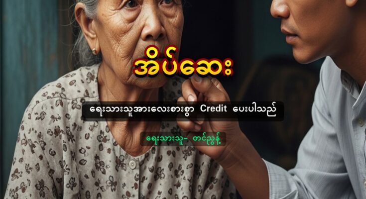 “အမေ ထမင်းစားပြီးပြီလား” “စားပြီးပြီ … ဘယ်အချိန် ရှိနေပြီလဲ” “သမီး ပြန်လာတာ နောက်ကျသွားတယ် အမေရယ် … လမ်းမှာ ကားတွေ ပိတ်နေလို့ပါ။ အမေ့ကို ကိုမောင် ထမင်းခူးကျွေးလိုက်တာလား” “အမလေး … ငါ့မှာ လက်မပါတာ ကျနေတာပဲ … ဝမ်းချင်း ဆုံတာ မဟုတ်ပေါင်တော် … ငါဆာတဲ့ အချိန် ထည့်စားမှာပဲ … ဟဲ့ ငမောင် … သွားလေ … ငါဝယ်ခိုင်းတာ သွားဝယ်” “ကိုမောင် … အမေက ဘာဝယ်ခိုင်းနေတာလဲ” “အိပ်ဆေးတဲ့ကွာ … ညဆိုရင် အိပ်မရလို့တဲ့” “အမေ … အိပ်ဆေး မသောက်ပါနဲ့လား … သမီး အားဆေးတစ်မျိုးတိုက်မယ်လေ … အဲဒီအားဆေးက အမေအိပ် ပျော်မှာပါ” “အို ညည်းအားဆေးတွေက ဝမ်းချုပ်တယ် … သောက်ချင်ဘူး … ငါ အိပ်ဆေးပဲ သောက်ချင်တယ်။ ဟဲ့ ငမောင် မသွားသေးဘူးလား” “သွားမယ်အမေ … သွားမယ်” သားဖြစ်သူက သူ့အမေ နားပူသည်ကို မခံနိုင်သဖြင့် အိမ်အပြင်ကိုထွက်သွားသည်။