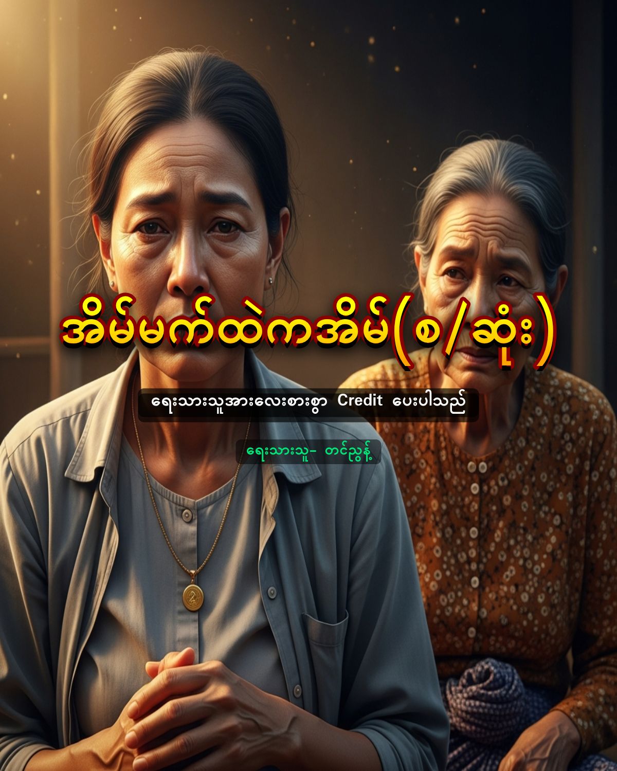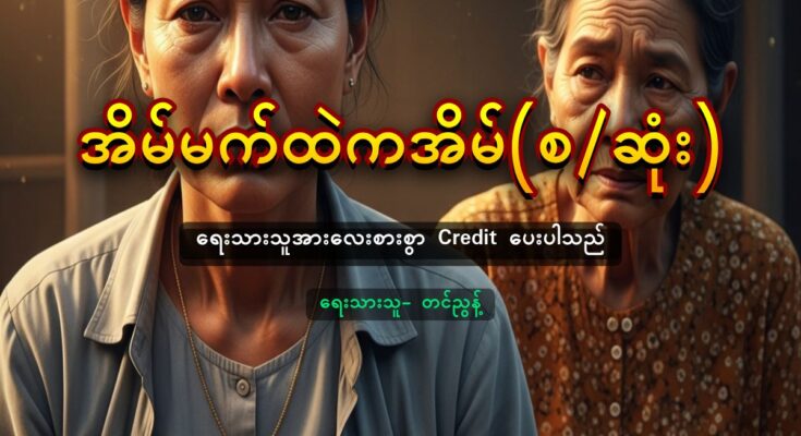 အဝေးက ကျမ အမေ့အသံကိုဖုန်းထဲကကြားလိုက်တာနှင့် အလိုလိုခေါင်းညိတ်မိသားဖြစ်နေတယ်။ အိမ်ပြင်ဆင်ပြီးသွားတဲ့အခါကျတော့ အမေက အိမ်တက်အလှုလုပ်ချင်သေးတယ်လို့ ပြောလာပါတယ်။ အလှုက အလှုကြီးလုပ်မှာတဲ့။ တစ်ရပ်ကွက်လုံး နဲ့ရပ်ဝေးရပ်နီးမကျန် သုံးဆယ့်ခြောက်ဝမ်းကွဲအမျိုးတွေပါဖိတ်မှာဆိုတော့။ ကျွေးမှာက ဒန်ပေါက်တဲ့။ ကောင်းပါတယ်လေ။ ကုသိုလ်ရတဲ့အလှုလေးပေါ့။ ပြီးခဲ့တဲ့အတိတ်အကြောင်းတွေတွေးမိပါတယ်။ အမျိုးသားဆုံးသွားတော့ သမီးလေးနှစ်ယောက်နဲ့ ကျမ ဘာအလုပ် ကိုစလုပ်ရမှန်းမသိခဲ့ပါ။ ညီအကိုမောင်နှမတွေနဲ့ အမေကနိုင်ငံခြားမှာအလုပ်သွားလုပ်ဖို့တိုက်တွန်းပါတယ်။ ပညာကအများကြီးမတတ်။ ငွေအရင်းအနှီးကမရှိဆိုတော့ အမေက အိမ်ဂရန်ကိုပေါင်ပေးလိုက်ပြီးအရင်းနှီးပြုစေတယ်။