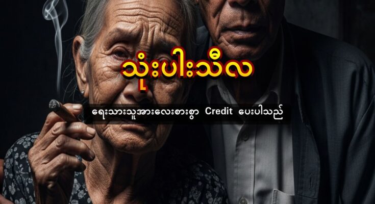“ဒီနှစ်သောင်းက ကျွန်မက ဦးလေးနဲ့အဒေါ်ကို ကန်တော့တာ နော်။ ချေးတာ မဟုတ်ဘူးနော်” ဘွားရင်သည် ပိုက်ဆံနှစ်သောင်း ကို အသာလှမ်းယူရင်း တုန်ယင် သာအသံဖြင့် သာဓုခေါ်လိုက်သည်။ သွားရင်သည် မျက်ရည်မကျအောင် မနည်းထိန်းရင်း အပျိုကြီးပြောသော စကားများကို အလိုက်သင့် ပြန်ပြော နေရသည်။ သို့သော် ဘွားရင်သည် စိတ်နှင့်ကိုယ် မကပ်တော့။ ဝမ်းနည်း အားငယ်နေတော့သည်။ သမီး နှစ်ယောက်သို့ စိတ်က ရောက်လိုက်၊ မဖွင့်ဖြစ်သော အသုပ်ဆိုင်ကလေးသို့ စိတ်ကရောက်လိုက်နှင့် ဖြစ်နေသည်။ အပျိုကြီး ပြန်သွားသောအခါ ဘွားရင် သည် အိမ်ရှေ့ပြတင်းဆီသို့ လေးလေး ဖင့်ဖင့် လျှောက်သွားကာ ပံ့ပို့ကလေး ထိုင်နေမိတော့သည်။ ထို့နောက် တွင်တော့ တံခါးမှတစ်ဆင့် မြင်ရ သော လမင်းကြီးကို ငေးကြည့်ရင်း ဖက်ကြမ်းဆေးလိပ်ကိုသာ နာနာပိ၍ ဖွာနေတော့သည်။ *စိတ်လည်း သိပ်မညစ်ပါနဲ့ မယ်ရင်ရယ်…” ဘိုးလေးမောင်သည် ဘွားရင် ဘေးသို့ ကပ်ထိုင်ရင်း တိုးတိုးလေး ဆိုသည်။ ထို့နောက် ဘွားရင်၏ လက်မောင်းပိန်ပိန်လေးကို အသာ ဖျစ်ညှစ်ရင်း အားပေးသည်။ “စိတ်ညစ်တယ်ရယ်လည်း မဟုတ်ပါဘူး အဘိုးကြီးရယ်… တော့်သမီးတွေလုပ်ပုံ မဟုတ်တာကို စိတ်ဆိုးတာပါတော်။