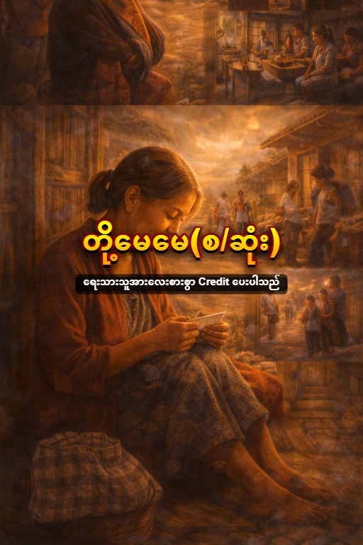 မေမေ သားတို့ ကျောင်းမှာ ရခိုင်တိုင်းလေဘေး ကယ်ဆယ်ရေးအတွက် ပိုက်ဆံယူခဲ့ရမယ်တဲ့ ဘယ်လောက်တဲ့လဲ သားရယ် ငါးမူးတဲ့ မေမေ ဟုတ်တယ်မေမေ ၊ သမီးတို့ရောပဲ ဟုတ်တယ် ၊ ဟုတ်တယ် အားလုံး ဝိုင်း၍ အော်လိုက်ကြသည် ။ ဒေါ်မြနှစ်သည် ချွေးခံအင်္ကျီထဲမှ ၁၅ ပြားကို သတိရလိုက်သည် ။ သည် ၁၅ ပြား နှင့် ကလေးတွေ နှင့် ။ သည်တော့ သူမသည် ဝက် သားဟင်းအိုးကို မီးဖိုပေါ် တင်ထားခဲ့ပြီး ဖာလေးထဲမှ အင်းလေးထဘီကို ဆွဲထုတ်လိုက်သည် ။ ဘာလုပ်ဖို့လဲ မေမေ ဌေးရီသက်က မျက်နှာကို သနပ်ခါး လူးနေရာမှ လည်ပြန်ကြည့်ရင်း မေးလိုက်သည် ။ ထုံးစံအတိုင်းပေါ့ သမီးရယ် ထုံးစံအတိုင်း ဆိုသည်နှင့် ပေါင်တော့မည်မှန်း ဌေးရီသက် နားလည်သွားသည် ။ အို မေမေရယ် ၊ ရှေ့အပတ် သမီး အလှူသွားရင် ဝတ်ဖို့ ဘယ့်နှယ်လုပ်မလဲ သမီး ၊ စားရေးသောက်ရေးက ရှိသေးတယ် ၊ သမီး သွားစရာရှိရင် မမကြီးဆီက လုံချည် ငှားပေးပါ့မယ် ဒေါ်မြနှစ်သည် ခါးမှ ထဘီကို လှည့်ပတ် ကြည့်ရှုပြီး ထဘီပြဲကို အတွင်း၌ ထည့်ဝတ်လေသည် ။ မီးဖိုပေါ်မှာ ဝက်သားအိုး တင်ထားတယ် ၊ သမီး ကြည့်လိုက်ဦး ၊ မေမေ ခုပြန်လာမယ် ဒေါ်မြနှစ်သည် ခပ်သုတ်သုတ် ထွက်သွားသည် ။ လိုင်းဂိတ်ဝတွင် ပြည်သူ့ငွေချေးဌာနဆိုင် ရှိနေသဖြင့်သာ ဒေါ်မြနှစ် တို့လို မွဲပြာကျမောင်နှံများ အဖို့ ခံသာနေခြင်း ဖြစ် သည် ။ ဟိုလတုန်းကလည်း ဒေါ်မြနှစ် သည် ဥဿဖရား နားကပ်လေး ပေါင်ခဲ့ရသည် ။