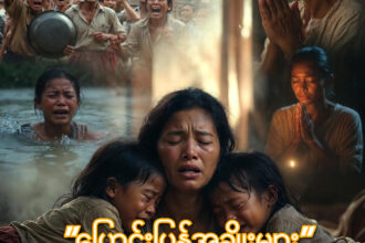 “ဟာ တစ်ခါတည်း အသေသတ်မယ့်သဘောပဲ ဒကာကြီးရဲ့” “မှန်ပါဘုရား၊ သူများတွေ ပညာပြိုင်ကြသလို တစ် ဆင့်ပြီး တဆင့် တက်ကြတာ မဟုတ်ဘူးတဲ့ဘုရား၊ တစ်ခါတည်း ရှိသမျှ အစွမ်းတွေကို တစ်ပြိုင်နက် တည်းထုတ်ပြီး တစ်ချက်တည်းနဲ့ အသေသတ်ဖို့ မယ်ဗျောက လုပ်တာဘုရား” မမယ်ဇံကလည်း သူ့ပညာကို အစဉ်အတိုင်း တက် လို့ မရတော့ဘဲ စက်တွေထုတ်ရတော့တဲ့ဘုရား။ ဒါ ပေမဲ့ မမယ်ဇံထုတ်တဲ့ စက်က အဖြူရောင် တလက် လက် တောက်နေတဲ့ စက်တစ်မျိုးတည်း ထုတ်တာ တဲ့ဘုရား။မမယ်ဇံရဲ့ လက်ဖဝါးနှစ်ဖက်၊ ပခုံးနှစ်ဖက် နဖူးရဲ့အလယ်တည့်တည့်ကနေ အဖြူရောင်စက် တွေ ထွက်လာပြီး မယ်ဗျောရဲ့ ရောင်စုံစက်တွေကို ကာထားတာတဲ့ဘုရား။ မယ်ဗျောရဲ့စက်တွေ ရှေ့ကို နည်းနည်းမှကို တိုး လို့မရတော့ဘူးဘုရား။ မယ်ဗျောက သူ့စက်တွေ ကို ထိန်းထားရင်းနဲ့ ချွေးသီးချွေးပေါက်တွေ ကျ လာရောတဲ့ဘုရား။ မမယ်ဇံကတော့ အေးအေး ဆေးဆေးပဲတဲ့။ တဖြည်းဖြည်းနဲ့ မယ်ဗျောကြီး အသားတွေ တဆတ်ဆတ် တုန်လာအောင်က တောင့့်ခံနေရတာတဲ့ဘုရား။ ဒီမှာတင် မယ်ဗျော ရဲ့သမီး မယ်သိန်းက ရွာထဲက ထမီခြုံအဆင့်ရှိ တဲ့ ယောက်ျားပညာသည်သုံးယောက်ကို အတင်း ဝင်လုခိုင်းရောတဲ့ဘုရား။ဟိုလူတွေက ပထမတော့ ငြင်းသေးတာတဲ့။ ‘ဟဲ့ မယ်သိန်းရဲ့၊ နင် စည်းမဖောက်နဲ့၊ ဒါ တစ် ယောက်ချင်း ပညာပြိုင်နေတာလေ’ လို့ ပြောကြပေမယ့် ဒီလူသုံးယောက်က မယ်ဗျော ရဲ့ အမျိုးတွေဆိုတော့… ‘ရှင်တို့ဟာ ကိုယ့်ဆွေကိုယ်မျိုး ကိုယ့်သွေးသားကို တောင်မှ သံယောဇဉ် မရှိကြဘူး။