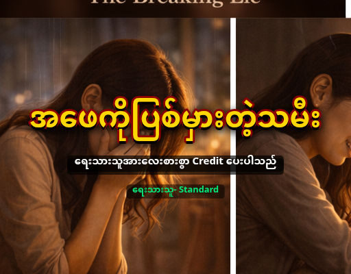 အခန်း (၄) နှုတ်ဆိတ်သွားတဲ့ မေတ္တာ ကျွန်မရဲ့ စကားအဆုံးမှာ အဖေ့ရဲ့ မျက်နှာပေါ်က အပြုံးတွေ ချက်ချင်း ရပ်တန့်သွားတယ်။ အဖေ့ရဲ့ မျက်လုံးတွေထဲမှာ နာကျင်မှု၊ အံ့သြမှု၊ ပြီးတော့ ကြေကွဲမှုတွေကို တစ်ပြိုင်နက်တည်း ကျွန်မ တွေ့လိုက်ရတယ်။ လောကကြီး တစ်ခုလုံး ရပ်တန့်သွားသလိုပဲ။ အဖေက ကျွန်မကို စိုက်ကြည့်နေရင်းကနေ မျက်လွှာကို ချလိုက်တယ်။ ပြီးတော့ ဝေယံ့ဘက်ကို လှည့်ကာ ခပ်ယဲ့ယဲ့ ပြုံးပြလိုက်ပြီး… “ဟုတ်ပါတယ် ကလေးရယ်… ဦးက သူတို့အိမ်က အလုပ်သမားဟောင်းပါ။ သမီးလေးကို သတိရလို့ လာတွေ့တာပါ” လို့ တုန်လှုပ်နေတဲ့ အသံကြီးနဲ့ ဝင်ပြောပေးခဲ့တယ်။ ပြီးတော့ လက်ထဲက မုန့်အိတ်လေးကို ကျွန်မလက်ထဲ အတင်းထည့်ပေးခဲ့ပြီး “ဦး သွားလိုက်ပါဦးမယ်” ဆိုကာ လှည့်ထွက်သွားခဲ့တယ်။ အဖေ့ရဲ့ ကျောပြင်လေး တဖြည်းဖြည်း သေးငယ်ပြီး ဝေးကွာသွားတာကို ကြည့်ရင်း ကျွန်မ ရင်ထဲမှာ ဆို့နင့်နေအောင် နာကျင်ရတယ်။ မျက်ရည်တွေ ကျလာမလို ဖြစ်ပေမယ့် ဝေယံ့ရှေ့မှာမို့လို့ အတင်းအောင့်ထားခဲ့ရတယ်။ အဲ့ဒီနေ့ကစပြီး အဖေ့ဆီက ဖုန်းဝင်မလာတော့ပါဘူး။ ကျွန်မ ပြန်ဆက်ရင်လည်း ဖုန်းက အမြဲစက်ပိတ်ထားခဲ့တယ်။ အချိန်အနည်းငယ် အကြာမှာတော့ ကျွန်မ ထင်ထားသလို ဝေယံဟာ ကျွန်မအပေါ် သစ္စာမရှိခဲ့ပါဘူး။ ပိုချမ်းသာပြီး ပိုလှတဲ့ မိန်းကလေးတစ်ယောက်ကို တွေ့သွားတဲ့အခါ ကျွန်မကို ရက်ရက်စက်စက် လမ်းခွဲသွားခဲ့တယ်။ အဲ့ဒီအချိန်မှသာ ကျွန်မရဲ့ အတုအယောင် ကမ္ဘာလေး ပြိုကျသွားပြီး ကျွန်မကို အမှန်တကယ် ချစ်တဲ့သူဟာ လောကမှာ အဖေတစ်ယောက်တည်း ရှိတယ်ဆိုတာ နာကျင်စွာ သဘောပေါက်ခဲ့ရတော့တယ်။