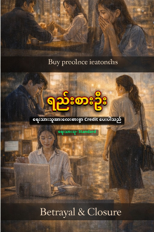 **အခန်း (၅)** အဆိုးရွားဆုံး အချိန်ကို ရောက်လာခဲ့ပါပြီ။ ထက်မြတ်ရဲ့ မွေးနေ့မှာ သူ့ကို အံ့သြသွားအောင် (Surprise) လုပ်မယ်ဆိုပြီး ကျွန်မ ကိုယ်တိုင်ချက်ထားတဲ့ ဟင်းချိုင့်လေးဆွဲကာ သူ့ရုံးအောက်ကို သွားခဲ့တယ်။ ရုံးရှေ့မှာ ရပ်နေတုန်း… ထက်မြတ်နဲ့ ဆုပြည့်တို့ နှစ်ယောက် ကားပေါ်ကနေ အတူတူ ဆင်းလာတာကို မြင်လိုက်ရတယ်။ ဆုပြည့်က ထက်မြတ်ရဲ့ လက်မောင်းကို ချိတ်ထားပြီး နှစ်ယောက်သား ရယ်မောပျော်ရွှင်နေကြတယ်။ ကျွန်မ ခြေလှမ်းတွေ ရပ်တန့်သွားတယ်။ ထက်မြတ် ကျွန်မကို မြင်သွားတဲ့ အချိန်မှာ သူ့မျက်နှာမှာ အံ့သြမှုနဲ့အတူ ရှက်ရွံ့မှု၊ စိတ်ရှုပ်ထွေးမှုတွေ ဖြတ်ပြေးသွားတယ်။ သူ ဆုပြည့်ကို တစ်ခုခုပြောပြီး ကျွန်မဆီကို လျှောက်လာခဲ့တယ်။ “အိန္ဒြာ… ဒီကို ဘာလာလုပ်တာလဲ” “ကိုယ့်မွေးနေ့လေ… အိန္ဒြာ ထမင်းလာပို့တာ” လို့ ကျွန်မ တုန်ယင်နေတဲ့ အသံနဲ့ ပြောလိုက်တယ်။ သူက သက်ပြင်းတစ်ချက်ကို လေးလေးနက်နက် ချလိုက်ပြီး ကျွန်မကို လူရှင်းတဲ့ နေရာတစ်ခုကို ခေါ်သွားတယ်။ ပြီးတော့ ကျွန်မ တစ်သက်လုံး မေ့လို့မရနိုင်တော့မယ့် စကားကို ပြောချလိုက်ပါတယ်။ “အိန္ဒြာ… ငါတို့ လမ်းခွဲကြရအောင်။ ကိုယ်တို့က ကလေးတွေ မဟုတ်တော့ဘူးလေ။ ချစ်တယ်ဆိုတဲ့ စကားလေး တစ်ခွန်းတည်းနဲ့ ဘဝကို တည်ဆောက်လို့ မရဘူး။ ဆုပြည့်က ကိုယ့်ရဲ့ ရှေ့ရေးအတွက် အများကြီး ပံ့ပိုးပေးနိုင်တယ်။ ကိုယ့်ကို ခွင့်လွှတ်ပါ… ကိုယ့်ဘဝ တိုးတက်ဖို့အတွက် ကိုယ် ရွေးချယ်ရတော့မယ်။” အဲဒီအချိန်မှာ ကျွန်မရင်ဘတ်ထဲက စူးခနဲ နာသွားတယ်…။ အသက်ရှူရတာ ကျပ်လာပြီး လေဟာနယ်တစ်ခုထဲကို ပြုတ်ကျသွားသလို ခံစားလိုက်ရတယ်။ ကျွန်မ ချစ်ခဲ့တဲ့၊ ကျွန်မကို ကတိတွေ အလီလီပေးခဲ့တဲ့ ရည်းစားဦးလေးဟာ ငွေကြေးနဲ့ ရာထူးနေရာတွေရှေ့မှာ ကျွန်မကို ရက်ရက်စက်စက် စတေးပစ်ခဲ့ပြီဆိုတာ နားလည်လိုက်ပါတယ်။ မျက်ရည်တစ်စက်မှတောင် မကျနိုင်လောက်အောင် ကျွန်မ အသည်းနှလုံးတွေ တစ်စစီ ကွဲကြေသွားခဲ့ရပြီ။
