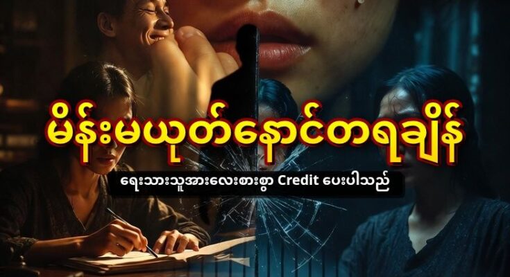 မိုးဖွဲဖွဲကျနေတဲ့ ညနေခင်းက အတော်လေးအေးစက်တယ်။ ကျွန်မ လက်ထဲမှာ ကိုင်ထားတဲ့ ဖုန်းလေးက တုန်ခါနေပေမဲ့ ဖြေဖို့ ခွန်အားမရှိဘူး။ မြင်ရတဲ့ နံပါတ်က ကျွန်မရဲ့ ယောင်္က္ကား ကိုသန့်ဆီက။ ဒါပေမဲ့ ကျွန်မ မကိုင်ရဲဘူး။ ကျွန်မ လုပ်ခဲ့တဲ့ အမှားတွေက ကျွန်မ လည်ပင်းကို ကြိုးကွင်းစွတ်ထားသလို အသက်ရှူရ ကြပ်လွန်းနေပြီ။ ဒီအိမ်ကြီးထဲမှာ ကျွန်မ တစ်ယောက်တည်း ရပ်နေရင်း မှန်ထဲက ကိုယ့်ကိုယ်ကိုယ် ပြန်ကြည့်မိတယ်။ လှပတဲ့ မျက်နှာနောက်ကွယ်မှာ ပုပ်ပွနေတဲ့ စိတ်ထားတစ်ခု ရှိနေခဲ့တာ ကျွန်မကိုယ်တိုင်ပဲ သိတာပေါ့။ လူတွေက ကျွန်မကို “မိန်းမယုတ်” လို့ ခေါ်ကြမယ်ဆိုရင်တောင် ကျွန်မမှာ ငြင်းပိုင်ခွင့် မရှိပါဘူး။