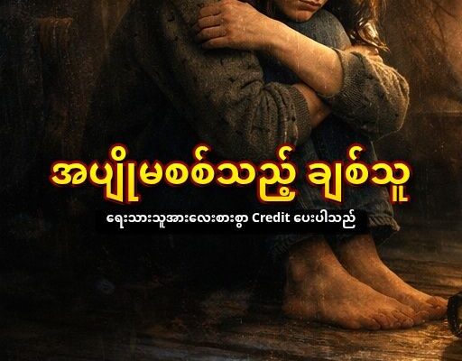 အခန်းကျဉ်းလေးထဲမှာ စီးကရက်နံ့တွေက မွန်းကြပ်နေတယ်။ ကျွန်မ ကုတင်ခြေရင်းမှာ ဒူးနှစ်ဖက်ကို ပိုက်ပြီး ထိုင်နေမိတာ ဘယ်လောက်ကြာပြီလဲ မသိတော့ဘူး။ နံရံပေါ်က နာရီသံက တချက်ချက်နဲ့ ကျွန်မရဲ့ နှလုံးခုန်သံကို လှောင်ပြောင်နေသလိုပဲ။ မင်းခန့်ကတော့ ဆိုဖာပေါ်မှာ ခြေထောက်ချိတ်ထိုင်ရင်း ကျွန်မကို ရွံရှာသလို ကြည့်နေတယ်။ သူ့မျက်လုံးတွေထဲမှာ တစ်ချိန်က ရှိခဲ့တဲ့ ကြင်နာမှုတွေ အရိပ်အယောင်တောင် မကျန်တော့ဘူး။ မင်းလို မိန်းမမျိုးကိုမှ ငါက တန်ဖိုးထားခဲ့မိတာ။ သူ့ရဲ့ ဒီစကားတစ်ခွန်းက ကျွန်မရဲ့ ရင်ဘတ်ကို ဓားနဲ့ အချက်ပေါင်းများစွာ အမွှန်းခံလိုက်ရသလိုပဲ။ ကျွန်မ ဘာမှ ပြန်မပြောနိုင်ခဲ့ဘူး။ ကျွန်မမှာ အပြစ်ရှိတယ်လေ။ သူ့အတွက် ကျွန်မက အပျိုစင်တစ်ယောက် မဟုတ်ခဲ့ဘူးဆိုတဲ့ အမှန်တရားက ကျွန်မတို့ကြားမှာ အနက်ရှိုင်းဆုံး ချောက်ကမ်းပါးကြီး ဖြစ်သွားခဲ့ပြီ။