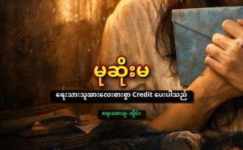 ဗိုက်ထဲက ကလေးက အရမ်းတိုးလာလို့ ကျွန်မ ဆေးရုံတက်လိုက်ရတယ်။ မွေးခန်းထဲမှာ နာကျင်မှုတွေနဲ့ အော်ဟစ်နေရင်း ကျွန်မ မင်းရဲ့ နာမည်ကိုပဲ တမ်းတနေမိတယ်။ ကလေးလေး မွေးလာတဲ့အခါ၊ ကလေးရဲ့ မျက်နှာလေးက မင်းနဲ့ အစစ်ပဲ။ အဲ့ဒီအချိန်မှာပဲ မင်းရဲ့ သူငယ်ချင်း ကိုစိုး ရောက်လာတယ်။ သူ့လက်ထဲမှာ စာအိတ်တစ်အိတ်နဲ့ အထုပ်တစ်ထုပ်ပါတယ်။ “မင်း… မင်း မရှိတော့ဘူး နွေ” တဲ့။ ကျွန်မ နားမလည်နိုင်သလို ကြည့်နေမိတယ်။ ကိုစိုးက ဆက်ပြောပြတယ်။ “မင်းက မင်းတို့ သားအမိအတွက် ပိုက်ဆံရှာဖို့ တရားမဝင် ရေလုပ်ငန်းမှာ သွားလုပ်နေတာ။ အဲ့ဒီ အမျိုးသမီးက သူ့ကို အလုပ်သွင်းပေးတဲ့ ပွဲစား။ မင်းက နွေ့ကို ပိုက်ဆံတွေ အများကြီး ရှာပေးချင်လို့ အသက်အန္တရာယ်ရှိတဲ့ အလုပ်ကို ရွေးခဲ့တာ။ ပြီးခဲ့တဲ့ အပတ်က ပင်လယ်ထဲမှာ မုန်တိုင်းမိပြီး…” ကိုစိုးရဲ့ စကားတွေက ကျွန်မ နားထဲမှာ ဝေးလွင့်သွားတယ်။ အထုပ်ထဲမှာတော့ ကျွန်မအတွက် ဝယ်ထားတဲ့ အားဆေးတွေ၊ ကလေးအတွက် အဝတ်အစားလေးတွေနဲ့ မင်းရဲ့ တောင်းပန်စာလေး တစ်စောင်ပါတယ်။