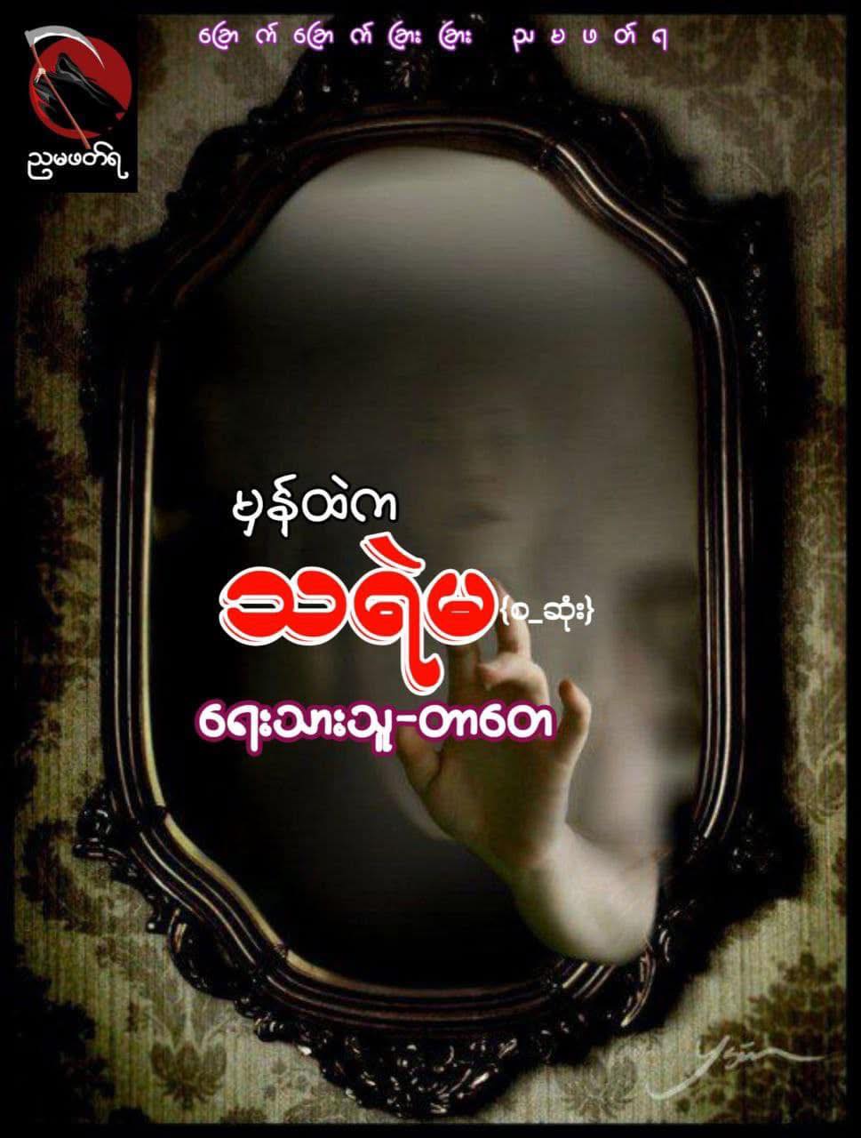 မရှင် စား စား။ မင်းစားဖို့ ငါ ချက်ခိုင်းထားတာ စား စားလို့ပြောတာတဲ့ကွ” “ဟင် ဟုတ်လား။ သူပြောတာ မိန်းမတစ်ယောက်ပေါ့ ဟုတ်လား ။ကိုကြီးကျောက်နီ” “အေး ဟုတ်တယ် ။ မိန်းမတစ်ယောက်ကို ကျွေးတာကွ” “ပေါက်စက မသိမသာနဲ့ တိုင်နောက်ကနေ ကပ်ပြီးကြည့်နေတာတဲ့ကွ။ အမဲသားဟင်းတုံးကြီးတွေက လျော့လျော့သွားတယ်ဆိုပဲ။ တစ်ချက်တော့ ပေါက်စ ဘာတွေ့လိုက်တယ် ထင်တုန်းကွ” “ဟင် မသိဘူးလေဗျာ” “မှန်ထဲက လက်ကြီးတစ်ဘက်ထွက်လာပြီး အမဲသားတုံးကြီးကို ယူသွားတာတဲ့ဟေ့” “ဟာ ကြောက်စရာကြီးပါလားဗျာ တခြားလူတွေကရော အဲဒါကို မတွေ့လိုက်ကြဘူးလား” “မတွေ့ဘူးကွ ဆရာမှုံက သူတို့ကို အာရုံလွှဲထားပုံရတယ်ကွ။တခြားစကားတွေ ပြောနေတော့ မှန်တင်ခုံကို ဒီလူတွေ အာရုံမရောက်ဘူးပေါ့ကွာ” “အင်း…လွယ်တော့ မလွယ်ဘူး ထင်တယ်ဗျ။ ကိုကြီးကျောက်နီရ။မပိုင်ဘဲ သွားလုပ်ရင်တော့ ဒုက္ခရောက်သွားနိုင်တယ်” “အေး အဲဒါကြောင့် မင်းကို ခေါ်ပြီးတိုင်ပင်ကြရတာပေါ့ တာတေရ။ မင်းက အတွေ့အကြုံတွေရှိတယ်ဆိုတာကို ငါတို့အားလုံး သိထားကြတာပဲကွ” “နေပါဦးဗျ။ကိုကြီးကျောက်နီရ။ နောက်တော့ အဲဒီကောင်လေး ဘယ်သူ” “ပေါက်စ ပေါက်စ” “အင်း …ဟုတ်ပြီ ပေါက်စ ပေါက်စ အဲဒီကောင်လေး ဘာထပ်မြင်သေးတုံး” “မမြင်တော့ဘူးကွ ။