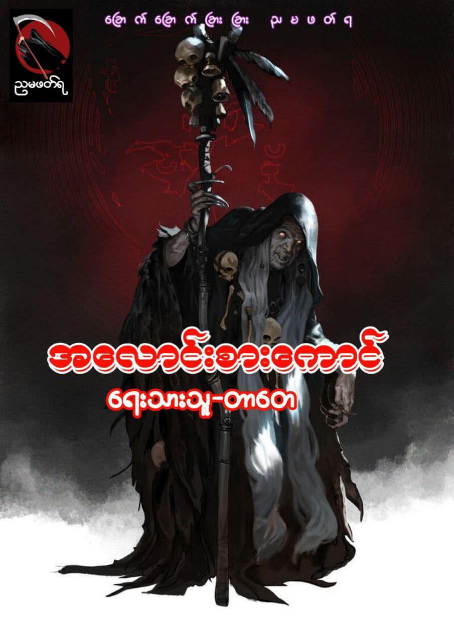ကျုပ်ကလည်း ဒါမျိုးတွေ လုပ်ရရင် လွှတ် စိတ်ဝင်စားတဲ့ကောင်ဗျ။ခေါင်းအဖုံးမှာ လွန် နဲ့ အပေါက်တွေ ဖောက်ခိုင်းရတယ်။ ဒါမှ ကျုပ် အသက်ရှူလို့ ရမှာပေါ့ဗျ။ အလောင်း စင် ပြင်တယ်။ အလောင်းစင်ပေါ်မှာ ခေါင်း လည်းတင်တယ်။ ဒါပေမဲ့ ခေါင်းထဲမှာတော့ ဘာမှ မရှိဘူးဗျ။ ကိုသာအောင်အလောင်း က အိမ်ထဲမှာပဲ။ မိုးချုပ်တော့ အသုဘကို ထမင်းကျွေးတဲ့ အတိုင်း အလောင်းစင်ဘေးမှာ ပြင်ထား တယ်။ခေါင်းရင်းမှာ မီးအိမ်တစ်လုံးလည်း ထွန်းလို့ဗျ။ညသန်းခေါင်လောက်ရောက် တော့ ကျုပ်ကမျက်ကွင်းဆေးကွင်းတယ်။ သစ်စုန်းဆေးတော်ကို သွေးပြီး နားနှစ်ဖက် မှာ လိမ်းတယ်။ ဒါမှကြေးစည်သံကြားရင် ကျုပ် အိပ်မပျော်မှာလေဗျာ။ ကျောက်ခဲနဲ့ သံမဏိကိုလည်း နားနှစ်ဖက်စလုံးမှာ သစ် စုန်းဆေးတော်သွေးပြီး လိမ်းပေးတယ်။ ဒီ ကောင်တွေ အိပ်လို့မပျော်မှ အိပ်သွားတဲ့ လူတွေ နှိုးပြီး ကျုပ်နောက်ကို လိုက်နိုင် မှာလေဗျာ။ “နောင် ဝေ ဝေ ဝေ” ဟာ ကြေးစည်သံကြီး စပြီးကြားရပြီဗျို့။ ကျုပ်က အလောင်းစင်ပေါ်တက်ပြီး ခေါင်း ထဲ ဝင်အိပ်လိုက်တယ်။ ကျုပ်လက်ထဲမှာ လည်း မဖဲဝါမှာတဲ့အတိုင်း ခြေမန်းကွင်းကို အဆင်သင့် ကိုင်ထားတယ်။ ခြေမန်းကွင်း ဆိုပေမယ့် ခေါင်းကို စွပ်လို့ရအောင် ခပ်ကြီး ကြီးလုပ်ထားတာဗျ။