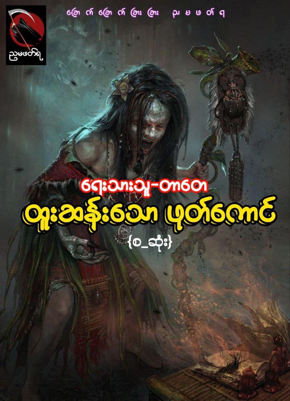 အဲဒီအကြောင်းတွေ ဆရာတော်ကို လျှောက်ပြီးလို့ ဆရာတော်က ငါ့ကို ဆရာရှာပါလို့ ပြောတယ်ကွ။ ငါလည်း ဆရာကြိတ်ရှာနေတာ တစ်ပါတ်လောက်တော့ ရှိပြီဟေ့။သတင်းတော့ ရနေပါပြီ အခု အဖြစ်အပျက်ကြီး ဖြစ်လာတော့ ဆရာတော်ကို ထပ်လျှောက် ရဦးမှာပေါ့ကွာ။ ကဲ ကဲ မင်းတို့ ကြက်ဖကြီးတွေ ပြန်ယူသွား။ ချက်တော့ မစားနဲ့နော်။မြေကျင်းနက်နက်တူးပြီး မြှုပ်သာပစ်လိုက်။ဒါမျိုးဆိုတာ ရောဂါဘယ ဖြစ်တတ်တယ်ကွဲ့။” “ဟုတ်ကဲ့ ဘိုး။ ကျုပ်တို့ ဒါတွေ မြေမြှုပ်ပစ်လိုက်မယ်” “အေးကြည့်ရတာတော့။ မယ်တော်ကြီးကိုဝင်တဲ့ ဖုတ္က သွေးစုတ်တဲ့ ဖုတ်မျိုးထင်တယ်ကွ။ ရွာထဲဝင်မွှေတာတောင် ခွေးမဟောင်ရဲဘူး ဆိုတော့ နည်းတဲ့ အဆင့်မဟုတ်ဘူးထင်တယ်။ သူကိုနိုင်လောက်တဲ့ ဆရာနဲ့မှ ဖြစ်မှာကွ။ မတောက်တခေါက် ဆရာမျိုးနဲ့ဆို သူ့ကို သွားဆွသလိုဖြစ်ပြီး တစ်ရွာလုံးကို ဒုက္ခပေးမှာ စိုးရိမ်ရတယ် တာတေရ” “ဟုတ်တယ် ဘိုး။ ဘိုးပြောတာ ဟုတ်တယ် တော်တော်ထက်တဲ့ ဆရာနဲ့မှ ရဦးမွာဗ်” XXXXXXX ပုဗ္ဗာရုံဆရာတော်ကလည်း ဒီအကြောင်းတွေ အားလုံးသိသွားပြီဆိုတော့ မယ်တော်ကြီး ကျောင်းရှေ့မှာ ဦးပဉ္ဇင်းနှစ်ပါးဆီ အလှည့်ကြ စောင့်ကြတယ်။ ဒီတော့ ရွာထဲတော့ မလာတော့ဘူးဗျ။ ဒါပေမဲ့ သူ့ကို စောင့်အိပ်တဲ့ လုံးကြည်နဲ့ သိန်းကြည်ကို အမြဲတမ်း ထိထားနေတာဆိုပဲ။ လူတွေပြောလာတော့ သွေးစုပ်တာလို့ပြောတာဗျ။