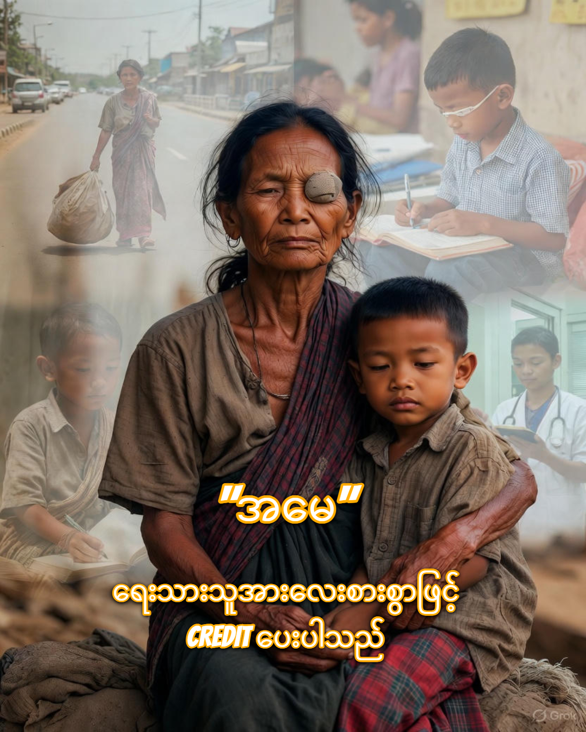 ဘာကြောင့်လည်းဆိုရင် အမေဟာ မကြာခင်မှာ လူလောကကြီးထဲက ထွက်ခွာသွားတော့မှာပါ။ ဒါပေမယ့် . . . အမေဘာကြောင့်မျက်လုံးတစ်ဖက်လှပ်နဲ့ သူတောင်းစားမဘဝကို ရောက်ခဲ့သလဲဆိုတာကိုတော့ အမေမသေခင် ငါ့သားကိုပြောခဲ့ပါရစေ။ ငါ့သား ၅ နှစ်သားအရွယ်လောက်က ဆော့ကစားတဲ့အခါ ကလေးချင်း ရန်ခိုက်ဒေါသဖြစ်ပြီး တစ်ဖက်ကလေးက အချွန်နဲ့ထိုးလိုက်လို့ သားမျက်လုံး ပေါက်သွားတာကိုမှတ်မိဦးမယ်လို့ အမေထင်ပါတယ်။ အဲဒီလို မျက်လုံးပေါက်သွားတော့ ဆရာဝန်ကို ပြကြည့် တဲ့အခါ ခင်ဗျားသားရဲ့မျက်လုံးတစ်ဖက်က ကုသလို့ မရတော့ဘူး၊ လုံးလုံးကန်းသွားပြီ။