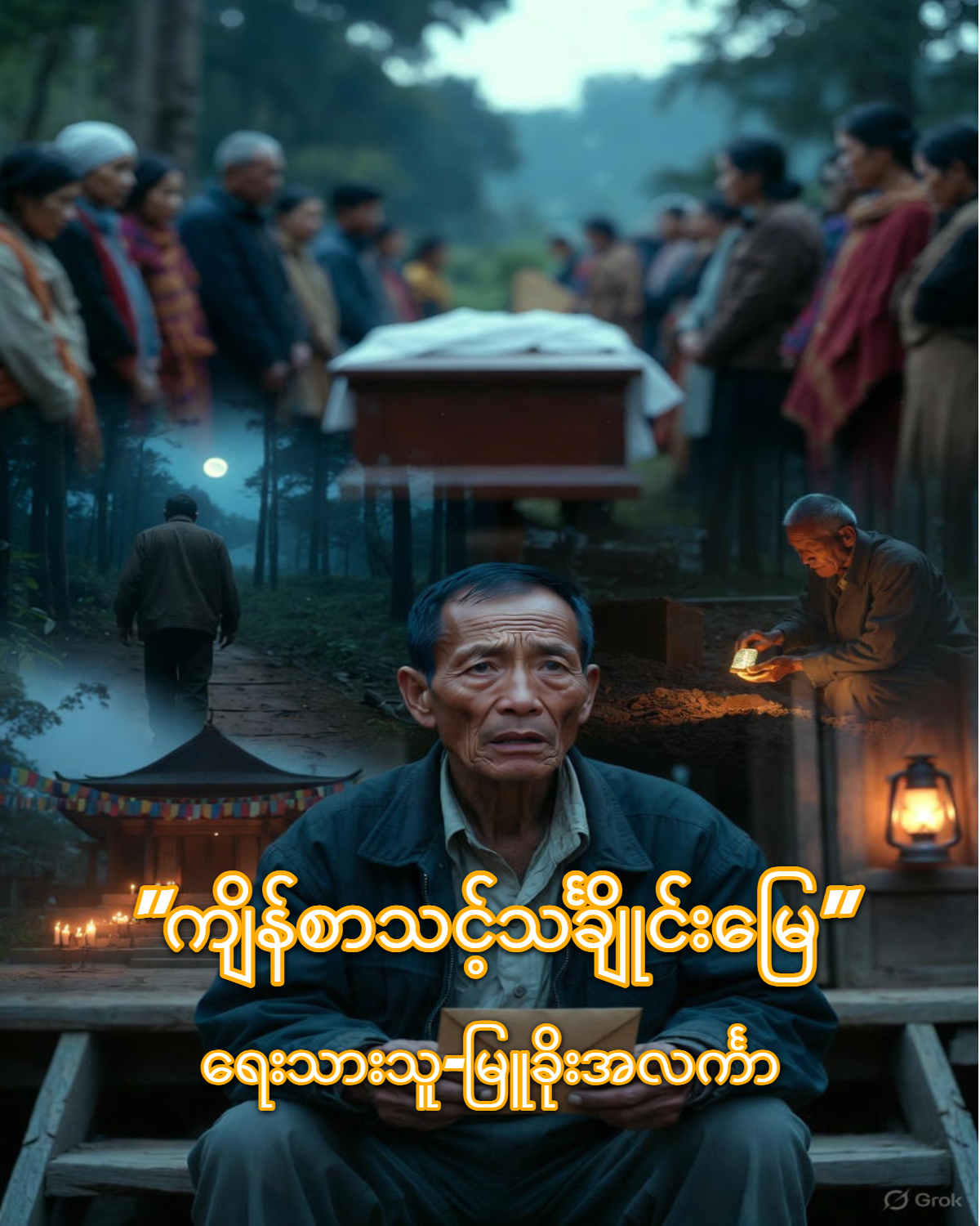 နိူင်လင်းမှာမျက်နှာကြီးကပြုံးဖြီးလျက် ”… ဒီနေရာမှာတစ်ခြား ရွေတွေအများကြီးရှိနေအုံးမှာပဲ…” ”…ဟုတ်တယ် ဒါသင်ချိုင်းဟောင်းနေရာသေ ချာနေပြီ ရှေ့ဆက်ရွေတွေ တူးရုံပဲရှိတော့တယ်…” စံဘမှနိူင်လင်းစကားကိုထောက်ခံဖြည့်စွက်ပြောလိုက်ခြင်းနဲ့အတူ သန်းထိုက်မှလည်း…. ”..ကျုပ်တို့ တူးရင်တူးသလောက် ရွေတွေရနိူင်ပြီဗျ အားလုံးရှေ့ဆက်ချမ်းသာပြီလို့ မှတ်ကြပေတော့ ခုနေ့ကတော့ မှောင်တော့မယ် နောက်တနေ့မှဆက် တူးကြတာပေါ့ …” ” ရွေ…ရွေတွေ.. တွေ့တာတော့ဟုတ်ပါပြီ ဒီအလောင်းကြီးက ခုထိမပျက်စီးပဲဘာလို့ရှိနေရတာလဲ….” အားလုံးကရွေတွေ့၍လောဘတက်နေချိန် အောင်ကြီးမှာ ခုချိန်ထိမပျက်မယွင်းအပုတ်နံ့ထွက်နေသောအလောင်းကြီးကိုကြည့်၍ သူများလိုအပြည့်အဝမပျော်နိူင်ပဲရှိနေ၏ ။ ”…လူသေကမင်းကိုဘာမှဒုက္ခမပေးနိူင်ဘူးအောင်ကြီး ဘာတွေဒီလောက်တွေးနေတာလဲ…” ” ဟုတ်တယ် ကိုအောင်ကြီးခုချိန်ကပျော်ရမယ့်အချိန်ဗျ အလကားစိတ်ပူစရာမရှိရှာကြံပူမနေနဲ့… ” ”..အဲတာတော့ဟုတ်ပါပြီကွာ ဒီအလောင်းနဲ့ ခေါင်းကြီးက ဘယ်လိုလုပ်ကြမလဲ…” အောင်ကြီးစိတ်ပူနေခြင်းကိုအားလုံးကရယ်မောလျက်ဖြင့်ရှိနေကြ၏ ။ စံဘမှာထိုင်ရာမှထလိုက်ရင်း… ”…လာ..နိူင်လင်းကိုအောင်ကြီးမျက်နှာကြီးက ဖြစ်ပျက်နေလိုက်တာ အခေါင်းကိုကျင်းထဲပြန် တွန်းချကြမယ်…” စံဘနဲ့နိူင်လင်းမှာ သစ်သားပြားအခေါင်းအဖုံးကိုပြန်ပိတ်ကြရင်းအခေါင်းကိုကျင်းထဲပြန်တွန်းချနေကြရာတစ်ခြားသူများမှာလည်းမနေသာတော့ပဲ အခေါင်းကိုကျင်းထဲပြန်တွန်းချလိုက်ကြတော့၏ ။
