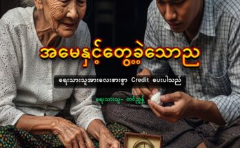 တစ်မေးတည်း မေးနေသည့် သမီးကို သနားသော်လည်း လိမ်ရဦးမည်။ ”အမေ့ကို ခွင့်လွှတ်ပါ သမီးရယ်” ဒေါ်နန်းအေး စိတ်ထဲက တောင်းပန်လိုက်သည်။ ပြီးနောက် ”စိတ်မကောင်းပါဘူး သမီးရယ်။ ကောင်းမြတ် လင်းလေ … ” ”ဟီး… အဖြစ်ဆိုးလိုက်တာ အစ်ကိုရယ်” ဒေါ်နန်းအေး စကားပင်မဆုံးသေး။ နန်းခမ်းဝါမှာ ချုံးပွဲချကာ ငိုလေတော့သည်။ —– ရွာဦးဘုန်းကြီးကျောင်းတွင် ကောင်းမြတ် လင်း နေသည်မှာ နှစ်နှစ်ပြည့်ပြီဖြစ်သည်။ ဆိုးရွားလှသည့် သူ၏မီးလောင်ရာမျက်နှာကို အခြားသူများ မြင်တွေ့သွားပါက ထိတ်လန့်မှာ စိုးရိမ်သဖြင့် ဘုန်းကြီးကျောင်းတွင် တိတ်တဆိတ် နေထိုင်ခြင်း ဖြစ်သည်။ ကပ္ပိယ ကြီးပင် သူ့ကို မြင်တွေ့စအချိန်က လန့်ပြီး မေ့လဲသွား၏။ ဆရာတော်ကိုယ်တိုင် နှာထိုး ယူခဲ့ရသည်။ လွန်ခဲ့သည့် ငါးလကျော်က နန်းခမ်းဝါလည်း သူ့ကို မြင်သည်နှင့် လန့်ပြီး မေ့မြောသွားသဖြင့် ဆေးရုံပေါ်တွင် တစ်လခန့် ဆေးကုသခဲ့ရသေးသည်။ ကြောက်မက်ဖွယ် ကောင်းသည့် သူ၏ရုပ်ကို ရင်းနှီးသူမှာ ရွာထဲ၌ ယောက္ခမ မိဘနှစ်ပါး အပါအဝင် ဆရာတော် နှင့် ကပ္ပိယကြီး လေးဦးသာ ရှိသည်။ ကောင်းမြတ်လင်းသည် နေ့ခင်းတွင် ဘယ်မှ မထွက်။ ကပ္ပိယကြီး ပို့ပေးသည့် ထမင်းကို စား၍ ကျောင်းအနောက်ဘက် ကွမ်းသီးပင် များကြားတွင်ရှိသော တစ်ချိန်က ဆရာတော် ဖိုထိုးသည့် ဖိုတဲဟောင်းတွင် တစ်ယောက် တည်းသာ နေ၏။ ကောင်းမြတ်လင်းသည် တစ်လလျှင် နှစ်ကြိမ်ခန့် လူခြေတိတ်ချိန်တွင် သူ၏ သားနှင့် ဇနီးကို လာကြည့်တတ်သည်။ လမှ နှစ်ကူးခဲ့ သော်လည်း သူတို့မိသားစုမှာ ပေါင်းစပ်၍ မရသေး။ မြင်နေပါရက် အတူနေခွင့်မရသည့် သူ၏ဘဝကိုတွေးကာ နေ့စဉ်ငိုခဲ့ရသည်။ ဒီလို ဘဝမျိုး သူမလိုချင်တော့။ ဆရာတော်နှင့် ကပ္ပိယကြီးကို နှုတ်ဆက်ကန်တော့ပြီး ဇနီးနှင့် သားကို နောက်ဆုံးအကြိမ် နှုတ်ဆက်ကြည့်ရှု ရန် သူထွက်လာခဲ့သည်။