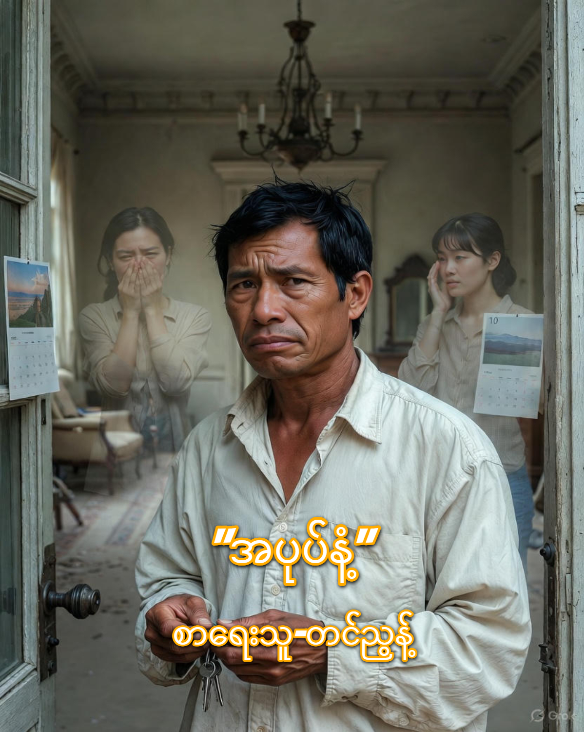 သူတို့အိမ်ကြီးကား အလွန်ကြီးကျယ်ခမ်းနားလှပေတော့သည်။ ထိုနေ့တွင် လူကြီးစုံရာ၊ ရှေ့နေရှေ့ရပ်စုံစွာ၊ သက်သေစုံစွာ ကွာရှင်းမှုကိုပြောဆိုပြီး လက်မှတ်ထိုးကြသလို ပိုင်ဆိုင်မှုတွေကိုလည်း ခွဲဝေကြသည်။ သူတို့မှာ သားသမီးတစ်ယောက်မျှ မရှိကြသဖြင့် သားရေးသမီးကိစ္စ ပြောစရာ မလိုတော့။ ခင်အေးမူက ဗိုလ်ချုပ်ဈေးရှိဆိုင်ခန်း၊ မာစီဒီးကားနှင့် စမ်းချောင်းရှိ ကွန်ဒိုခန်းတစ်ခန်းကို ယူသည်။ ယခု အိမ်ကြီးကို ကျော်ကျော်ကယူသည်။ ဤအိမ်နေရာကလည်း ကျော်ကျော်၏ ဘိုးဘွားပိုင်နေရာဖြစ်သည်။ ခင်အေးမူက ကျေနပ်စွာနှင့် ပိုင်ဆိုင်မှုခွဲဝေခြင်းကို လက်မှတ်ထိုးပေးသည်။ သို့သော် တစ်ခုပဲ တောင်းဆိုသည်။ “ကျွန်မ ဒီအိမ်ကြီးမှာ နောက်ဆုံး အနေနဲ့ သုံးရက်နေခွင့် ပေးရမယ်” “ပေးတယ် … အိမ်ထဲက ပစ္စည်းတွေလည်း မင်းကြိုက်တာ ယူသွားနိုင်တယ်” “ကောင်းပြီလေ … နောက်သုံးရက်နေရင် နင့်ကို ဒီမှာ မတွေ့ချင်ဘူး” “တွေ့စရာလည်း အကြောင်းမရှိပါဘူး” သူတို့ကိစ္စ ဤမှာတင် နိဂုံးချုပ်လိုက်ကြသည်။ ကျွန်တော်တို့လည်း စိတ်မကောင်းစွာနှင့် သူတို့တိုက်သော ကော်ဖီကိုသောက် ကိတ်မုန့်တွေကိုစားပြီး ပြန်ခဲ့ကြသည်။ နောက်တစ်လခန့်အကြာတွင် ကျော်ကျော် ကျွန်တော့်ဆီကို ဆိုက်ဆိုက်မြိုက်မြိုက် ရောက်လာသည်။