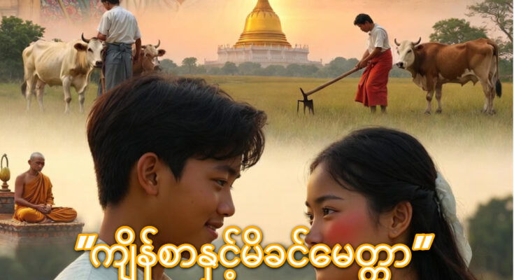 ထို့နောက်အောက်ပါအတိုင်းဆုတောင်းမှုပြုနေပေတော့သည်။ အရှင်ဘုရားတပည့်တော်တပည့်တို့မတို့ဇနီးမောင်နှံတွင်အသက်နှင်ထပ်တူချစ်ရသောဤသားလေးတစ်ယောက်သာရှိပါသည်။ဤသားငယ်အားဘေးအန္တရာယ်များမှလွတ်ကင်းအောင်ကယ်တင်စောင့်ရှောက်တော်မူပါဘုရားချစ်ဇနီး၏ဆုတောင်းသံကိုကြားနေရသည့်ကိုငြိမ်းသာရင်ထဲနင့်ခနဲနေအောင်ခံစားလိုက်မိရ၏။အကယ်၍သာတစ်ဦးတည်းသောသားလေးမောင်အံ့ထူးသည်လိမ္မာရေးခြားရှိသူဖြစ်ခဲ့သော်ဆိုသောစိတ်ကူးကကိုငြိမ်းသာာရင်ထဲထာဝရဖြစ်ပေါ်နေသောစိတ်ကူးတစ်ခုပင်တည်း။ ကိုငြိမ်းသာကဲ့သို့ပင်မိခင်ဖြစ်သူမအေးမယ်ကလည်းထိုစိတ်ကူးကိုမကြာခဏစောင့်နေသူဖြစ်သည်။မိန်းမသားဖြစ်သည်ကြောင့်သားဆိုးဒဏ်ကိုပိုခံရလိမ့်မည်ဟုကိုငြိမ်းသာကစာနာစစိတ်နှင့်တွေးမိသည်။ မိဘများမိမိအတွက်ဤသို့ဤပုံစိုးရိမ်သောကရောက်နေကြခိုက်ထွန်းမောင်တို့အိမ်ခြံဝင်းဘက်ထွက်လာခဲ့သောအံ့ထူးမှာရွာတောင်ဘက်စည်းရိုးအနီးတွင်မမျှော်လင့်ဘဲဟင်းရွက်ခူးနေသူနှင့်ကြုံကြိုက်လေသည်။ ဟယ်အံ့ထူး အမ်…ခင်နှင်းကြည်…နင်…နင် ဟင်းချိုခပ်ဖို့ဟင်းရွက်နဲ့တို့စရာလာခူးနေတာလေ၊နင်အခုဘယ်လဲ ထွန်းမောင်တို့အိမ်ဘက်သွားမလို့ ပြောပြောဆိုဆိုဘာမပြောညာမပြောနှင့်အံထူးကခင်နှင်းကြည်အနီးတိုးကပ်သွားကာပခုံးလေးဖက်လျက်ပါးကွက်ကြားနဲ့ပါးပြင်နုနုကိုရွှတ်ခနဲနမ်းလိုက်တော့သည်။ အိုး…အမေ နဂိုလှသောခင်နှင်းကြည်မျက်နှာလေးမှာအံ့ထူး၏သရမ်းမှုကြောင့်ရှက်သွေးဖြင့်ပန်းနုရောင်သန်းသွားသည်။သို့သော်သူ့မျက်နှာပေါ်တွင်စိတ်ဆိုးဟန်အမူအရာလုံးဝမရှိပကတိပြုံးချိုကာမျက်လုံးရွဲကြီးများကအရောင်တောက်ပဝင်းလက်လျက်ရှိသည်။ ငါနင့်ကိုချစ်တယ်ဟာငါကလွဲရင်နင်ဘယ်သူ့ကိုမှမချစ်ရဘူးနော်ခင်နှင်းကြည် ခင်နှင်းကြည်မမူဝံ့ပေ။