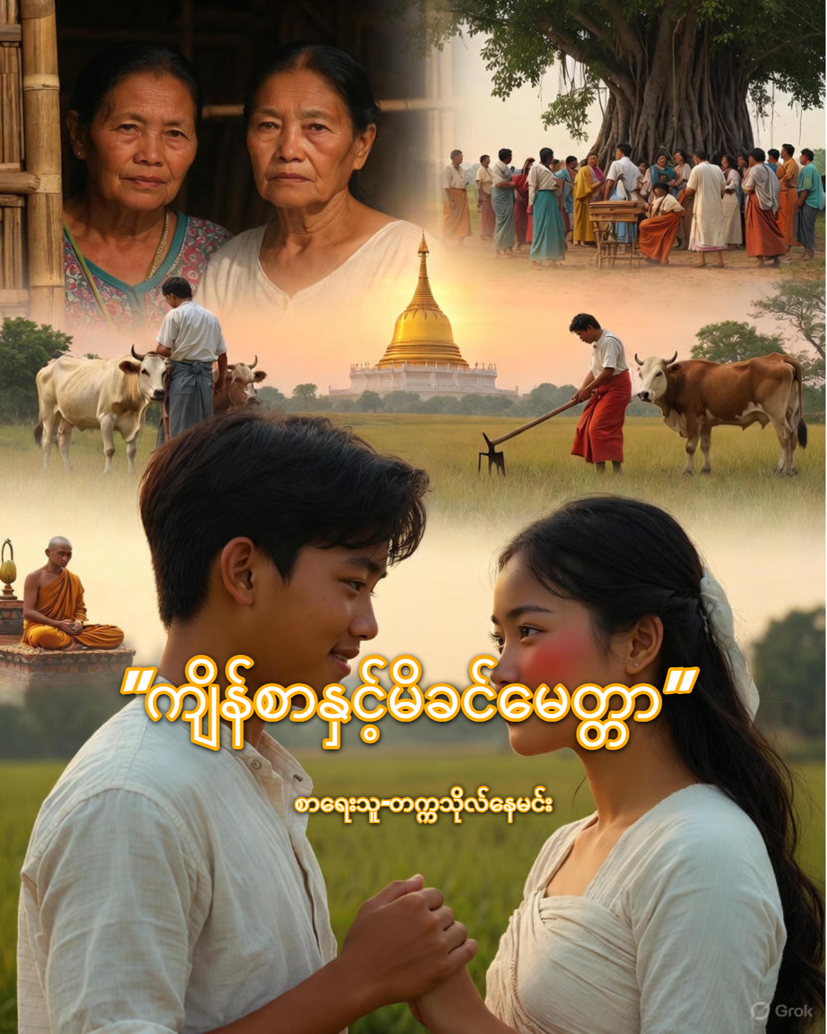 ပြီးမှဟုတ်တယ်ကိုငြိမ်းသာ၊တော်တို့ကျုပ်တို့လဲငယ်ရာကကြီးလာသူတွေပဲခင်နှင်းကြည်ရဲ့အမူအရာနဲ့အကြည့်တွေကိုအကဲခတ်မိသလောက်သားကလေးအပေါ်မှာသူ့မေတ္တာအလေးသာပုံရတယ်လို့တွက်နိုင်တယ်လေ အေးဟုတ်ပြီထားလိုက်ပါ၊ဒါဆိုရင်တို့သားကရောဘယ်လို အိုသူလည်းလူငယ်သဘာဝအရိပ်အကဲအမူအရာနဲ့အပြောအဆိုတွေကိုအကဲခတ်မိမှာပါရှင့် ခေတ္တမျှစကားပြတ်သွားလျက်လင်မယားနှစ်ယောက်အတွေးကိုယ်စီတွေးကာငြိမ်သက်တိတ်ဆိတ်သွားကြ၏။ပြီးမှကိုငြိမ်းသာက မိန်းမရေတကယ်လို့သာတို့သာလေးမောင်အံ့ထူးနဲ့ခင်နှင်းကြည်တို့မေတ္တာမျှကြမယ်ဆိုရင်ခင်နှင်းကြည်မိဘတွေဖြစ်တဲ့တင်ဖေနဲ့မလှတို့ကသဘောတူနိုင်ကြပါ့မလား၊သမီးရှင်အနေနဲ့မင်းတွေးကြည့်စ့မ်းပါလား ယင်းစကားကြောင့်မအေးမယ်မှာတဒင်္ဂမျှမိန့်မောသလိုတွေးတွေးငေးငေးဖြစ်သွားသည်။ထို့နောက်မှရှင်တွေးသလိုကျုပ်လည်းမကြာမကြာတွေးမိပါတယ်။သမီးချောလေးပိုင်ရှင်မိဘတွေအနေနဲ့တော့တစ်ရွာလုံးကလူဆိုးလို့သတ်မှတ်ထားသူတစ်ယောက်နဲ့ဘယ်မှာသဘောတူနိင်မှာလဲရှင် ကိုငြိမ်းသာကမည်သို့မျှမဆိုတော့၊ဦးခေါင်းတညိတ်ညိတ်သာလုပ်နေသည်။
