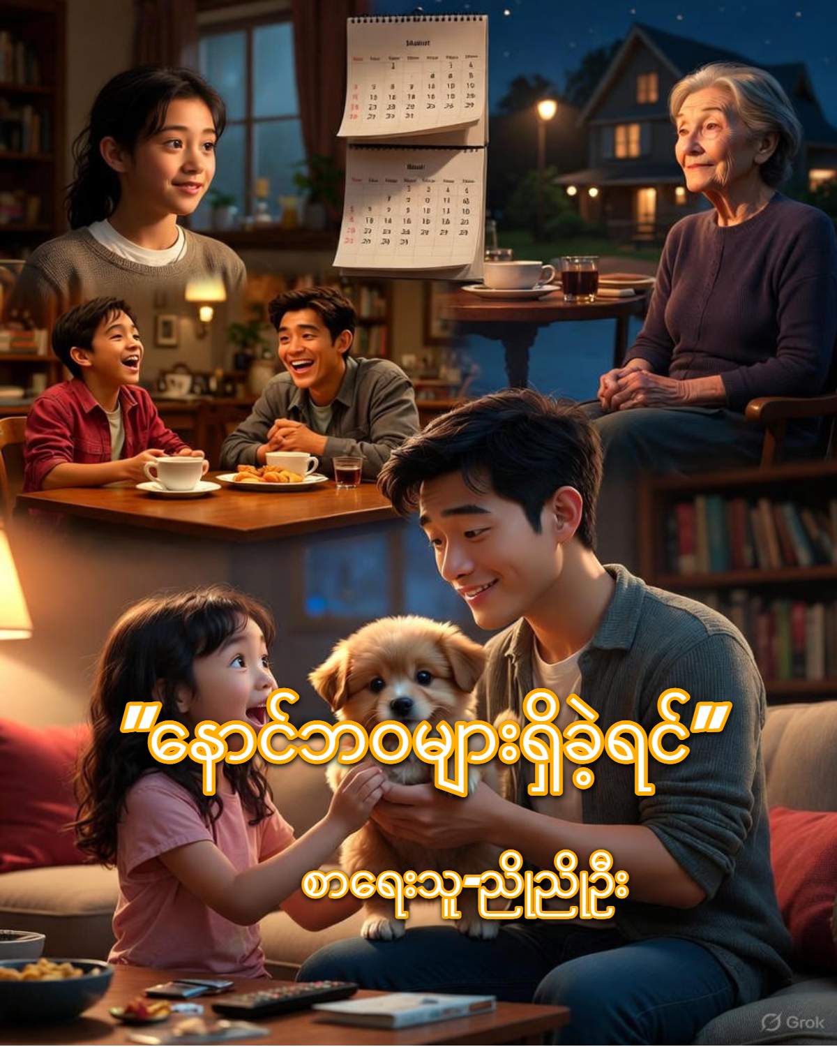 ရွှေရေးခြယ်တို့အိမ်ရှေ့မှာ ကားရပ်တော့ မျိုးသန့်က သူ့အိမ်ဘက် လျှောက်သွားပါပြီ၊ ကျွန်တော် အိမ်အဝရပ်ပြီး ဘဲလ်တီးသေးတယ်၊ မီးမလာလို့လားမသိ ဘဲလ်က မမြည်တာနဲ့ သံပန်းထဲက သစ်သားတံခါးကိုခေါက်လိုက်တယ်။တံခါးပွင့်လာတော့ မြင်လိုက်ရပါပြီ၊ ချစ်နှမရဲ့ မျက်နှာလှလှလေး “သြော်….အစ်ကိုပါလား၊ဝင်ပါရှင့်” ကျွန်တော် အိမ်ထဲဝင် ဧည့်ခန်းမှာထိုင်နေချိန် သူ့အမေကို သွားခေါ်တယ်။ “မောင်ကျော်ဇေယျ ရောက်နေတာကိုး၊ အန်တီက သတိရနေတာ” “ဟုတ်ကဲ့ အန်တီ၊ ဒီကညီမကို လက်ဆောင်လာပေးတာပါ၊ခဏနော်” ကျွန်တော် ကားထဲက ခွေးလေးနဲ့ သူ့ပစ္စည်းတွေ သွားသယ်လိုက်တယ်။ “အန်တီ..ညီမလေးမျက်လုံးကို ခဏပိတ်ထားပေးပါလား” “အေး..အေး” ခွေးလှောင်အိမ်လေး ကြမ်းပြင်ပေါ်ချ အထဲကခွေးလေးလွှတ်ပေးလိုက်တယ်။ လုံးလုံး..လုံးလုံးနဲ့ ရွှေရေးခြယ်နားတန်းသွားတယ်၊ဒါ့ကြောင့် ခွေးတွေက သူတို့ကိုချစ်တဲ့သူ၊မချစ်တဲ့သူကို ခွဲခြားသိတယ် ပြောကြတာကိုး။ “မျက်လုံးဖွင့်လို့ရပါပြီ” “အို..ချစ်ဖို့ကောင်းလိုက်တာ၊ ဒါညီမအတွက်လား” ပြောလည်းပြော ခွေးလေးကို ကောက်ပွေ့လိုက်တယ်၊ ဟေ့..ဟေ့..နေဦး၊ဆိုင်ကခေါ်လာတာ၊သန်းရှင်းရေးလုပ်ဖို့ လိုမယ် ဟုတ်ကဲ့အစ်ကို၊ ရေသွားချိုးပေးလိုက်ဦးမယ် ခွေးပစ္စည်းတွေယူ၊ ခွေးလေးသယ်ပြီးအိမ်ထဲဝင်သွားပါပြီ၊ကျွန်တော်သိတယ်၊ ပြန်တဲ့ထိ ခွေးလေးနဲ့အလုပ်ရှုပ်နေတော့မှာ၊ သူ့ရဲ့ ဂရုစိုက်မှုကိုရဖို့ သူ့ခွေးလေးထက် ကျွန်တော်က ပိုချစ်ဖို့ကောင်းနေရမယ် ဆိုတာ မဆီမဆိုင်တွေးရင်း ပြုံးလိုက်မိတယ်။ နောင်ဘဝများရှိခဲ့ရင်(အပိုင်း-၃) “မျိုးသန့် ငါမနက်ဖြန် သင်္ဘောတက်ဖို့ သွားရတော့မယ်၊ညနေလာမလို့၊ရုံးဆင်းရင် သွားစရာရှိလား” “မရှိဘူး၊ လာခဲ့သူငယ်ချင်း” ညနေ လေးနာရီလောက် အိမ်က ထွက်လာခဲ့တယ်။ရွှေရေးခြယ်တို့အိမ် အရင်ဝင်နှုတ်ဆက်မယ်။ အိမ်ရှေ့ရောက်တော့ တံခါးလာဖွင့်ပေးတာအန်တီ၊ “လာ..လာ..သား” အိမ်ထဲဝင်ပြီး ဧည့်ခန်းမှာထိုင် မျက်လုံးက ရွှေရေးခြယ်ကိုရှာနေမိတယ်။ကိုယ့်အကြည့်ကို အန်တီသိသွားတယ်ထင်ပါရဲ့။