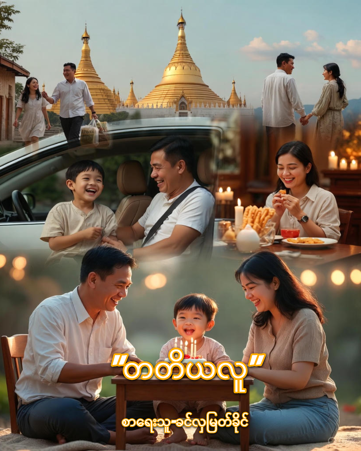 ဒီနေ့ သားသား လေးမွေးနေ့ပါ.. ကျမတို့မိသားစုသုံးယောက်ရွှေတိဂုံဘုရားဖူးကြတယ်.. ကစားကွင်းလိုက်ပို့တယ်.. အပြန်မှာတော့ ရွှေတောင်တန်းကစကားဝါမှာ ကြေးအိုးဝင်သောက်တယ်.. မောင်က ကျမနဲ့သားသားကိုသူ့အရိပ်လေးလိုသဘောထားတယ်.. အလုပ်ပြီးလို့အိမ်ပြန်ရင်စားစရာတစ်ခုခုတော့ဝယ်လာစမြဲပါ.. အိမ်ပေါ်ကိုလှမ်းတက်ရုံရှိသေးတယ်. . ” ထွေးနေကောင်းလား သားကောဘယ်မှာလဲ..” စတဲ့စကားတွေနဲ့ ဦးစွာ နှုတ်ဆက်တတ်သူပါ.. . မောင်ပြန်လာတဲ့အချိန်ကတခါတရံမိုးချုပ်တတ်ပါတယ်.. ကျမနဲ့သားက ညစာကိုစောစွာစားတယ်.. ဒါပေမဲ့လည်း သူထမင်းစားတဲ့အချိန်မှာတော့ သူ့ဘေးမှာထိုင်ပေးရတယ်.. ကျမကလဲမောင့်အတွက် ဟင်းတခွက်ပေါ့.. အိမ်ထောင်စပြီးကျကတည်းကကျမ မောင်နဲ့ ဘုရားအတူဝတ်ပြုလာတာ ဒီနေ့ အထိပါပဲ.. မောင်နဲ့အတူ ဘုရားစင်ရှေ့မှာဝတ်ပြုရတာ ဘုရားဝေယျာဝစ္စလုပ်ပေးရတာ စိတ်ကြည်နူးချမ်းမြေ့ရပါတယ်.. ကျမရဲ့လက်ကလေးကို ဆုပ်ကိုင်ပြီး ဘဝဆက်တိုင်း ဒီမိသားစုနဲ့ပဲဆုံတွေ့ပါရစေလို့ မောင်က အမြဲပြောတယ်.. ကျမ ကျေနပ် ရပါတယ်.. ကျမတို့မိန်းမသားတွေမှာ လင်ယောက်ကျားရဲ့ ချစ်ခင်မြတ်နိုးခြင်းကိုခံရတယ်ဆို တာကလဲ ကုသိုလ်ထူး မဟုတ်ပါလား..