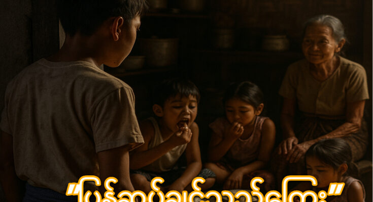 အဖွားက ပြုံးပြီးကြည့်နေပေလိမ့်မည်။ ဒါကိုတွေးမိ၍ ကိုကိုမောင် မဲ့ပြုံး ပြုံးမိခြင်း ဖြစ်ပါသည်။ (၃) ” ဖေဖေ့… အဖွားကို အိမ်မှာ ခေါ်ထားရင် ပြီးရော.. ရွာမှာနေရတာ အနေဆင်းရဲ အစားဆင်းရဲနဲ့..” “မင်းအဖွားက ခေါ်ထားလို့ မရလို့ပေါ့ မောင်မောင်ရယ် ” “ဘာဖြစ်လို့ မရတာလဲ ” “သူက မြို့မှာနေရတာ အသက်ရှူလို့ မဝဘူးတဲ့ကွာ..” “ဟာ သားတို့လဲ ကိုယ့်ခြံကိုယ့်ဝန်းနဲ့နေတာ ပဲဟာ” “တောနဲ့မြို့က ဘယ်တူမလဲကွ.. အမေက တောမှာမွေး..တောမှာကြီးတာဆိုတော့ ကွင်းထဲမှာနေနေကျ ဖြစ်နေတာလေ” “အဖွား နေနေကျတာက အကြောင်း မဟုတ်ဘူး .. အသက်ကြီးနေတာတောင် ဆင်းဆင်းရဲရဲ နေနေရလို့ သားက စိတ်မကောင်းတာ” “ဖေဖေ က မင်းအဖွားကို ထောက်ပံ့ထားတာ ပဲ မောင်မောင်ရယ် ..” “ဖေဖေရယ် ..ဖေဖေ ဘယ်လောက်ပဲ ထောက်ပံ့ထောက်ပံ့ အဖွားသုံးရတယ်မှ မရှိတာ..ဦးလေးဆီပဲ ရောက်ရောက်သွား တာလေ..” သည်တော့မှ သားအဖ ၂ယောက် စကားပြောနေသည်ကို ငြိမ်၍ နားထောင် နေသည့် မိခင်က “မေမေတို့လဲ သိတာပေါ့သားရယ်.. ဒါပေမဲ့ သားအဖွားက အဲဒီလိုနေရတာကိုပဲ စိတ်ချမ်းသာနေတော့ ဒီတိုင်းပဲ ကြည့်နေရ တော့တာပေါ့..” (၄) မကြာခင် အဖွား နာမကျန်း ဖြစ်ပါတော့ သည်။