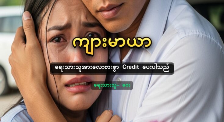 �“ကိုယ်တို့လမ်းခွဲကြရအောင်တေး…” “ရှင်…” ဘယ်တုန်းကမှကြားရလိမ့်မယ်လို့အိပ်မက်တောင်မမက်ဖူးတဲ့စကား ကို့နှုတ်ဖျားကထွက်ကျလာတော့ တေးဝေဖြာ အံ့ဩမှင်သက်သွားရသလို ဗယ်ဘက်ရင်အုံဆီကစူးအောင့်လှိုက်တက်လာခဲ့ရသည်။ “ဘယ်လို.. ဘယ်လိုပြောလိုက်တာလဲကို….�တေးတို့ဘာကိစ္စကြောင့်လမ်းခွဲရမှာလဲ…�တေးကို့ကိုဘယ်လောက်ချစ်တယ်ဆိုတာသိရဲ့သားနဲ့ကိုဘာဖြစ်လို့ဒီလိုစကားမျိုးပြောထွက်ရတာလဲဟင်…ပြောပါဦး.. ပြောပါဦးလို့…” စိတ်မြန်လက်မြန်ရှိလှသောတေးသည် စိုးရိမ်ပူပန်စိတ်ကြောင့်တထိတ်ထိတ်အခုန်မြန်နေသောရင်ဖြင့်ပါးစပ်ကလည်းပြောရင်း၊ လက်ကလည်း ကိုရဲ့လက်မောင်းနှစ်ဖက်ကိုဆွဲကိုင်လှုပ်ရမ်းနေခဲ့မိသည်။ ကိုကမျက်မှောင်ကြုတ်ကာ ပါးစပ်က”ကျွတ်”ကနဲမြည်အောင်အသံပြုရင်း တေးကိုစိတ်ပျက်သလိုစိုက်လို့ကြည့်နေခဲ့ပါသည်။ မထုံတက်တေးကိုရဲ့ပုံစံသည် တေးရဲ့သိချင်စိတ်ကိုပိုပြီးမရိုးမရွဖြစ်စေလာတာကြောင့်ဆွဲထားမိသောလက်မောင်းကိုတဖတ်ဖတ်ရိုက်နေမိခဲ့တော့သည်။ ကိုကသူ့ကိုယ်ကိုအနောက်ဘက်ရို့ကာ တေးရဲ့လက်တွေကိုရှောင်ရင်းကာရင်းက… “တေးဝေဖြာ… တစ်ခုခုဆိုလက်ပါခြေပါလုပ်တတ်တဲ့မင်းအကျင့်ကို ငါစိတ်ကုန်နေတာအတော်ကြာပြီဆိုတာသိရဲ့လား… အေး… ငါဘာကြောင့်လမ်းခွဲရချင်တာလဲဆိုတော့ ချစ်တာတစ်ခုတည်းသိပြီး၊�တစ်ဘက်သားရဲ့ခံစားချက်ကိုဘယ်တုန်းကမှထည့်မတွက်တတ်ခဲ့တဲ့၊ ကိုယ့်အတ္တကိုပဲအမြဲရှေ့တန်း တင်တတ်တဲ့မင်းနဲ့တစ်ဘဝလုံးရှေ့ဆက်ဖို့တွေးလိုက်မိရင်ကိုမွန်းကြပ်လွန်းလို့ကွ… ရှင်းပြီလား..” တေးနားမလည်နိုင်စွာပဲ ကို့ကိုမျက်လုံးအပြူးသားဖြင့်ရင်ဆိုင်ကြည့်လျှက်ခွန်းတုံ့ပြန်မိသည်။