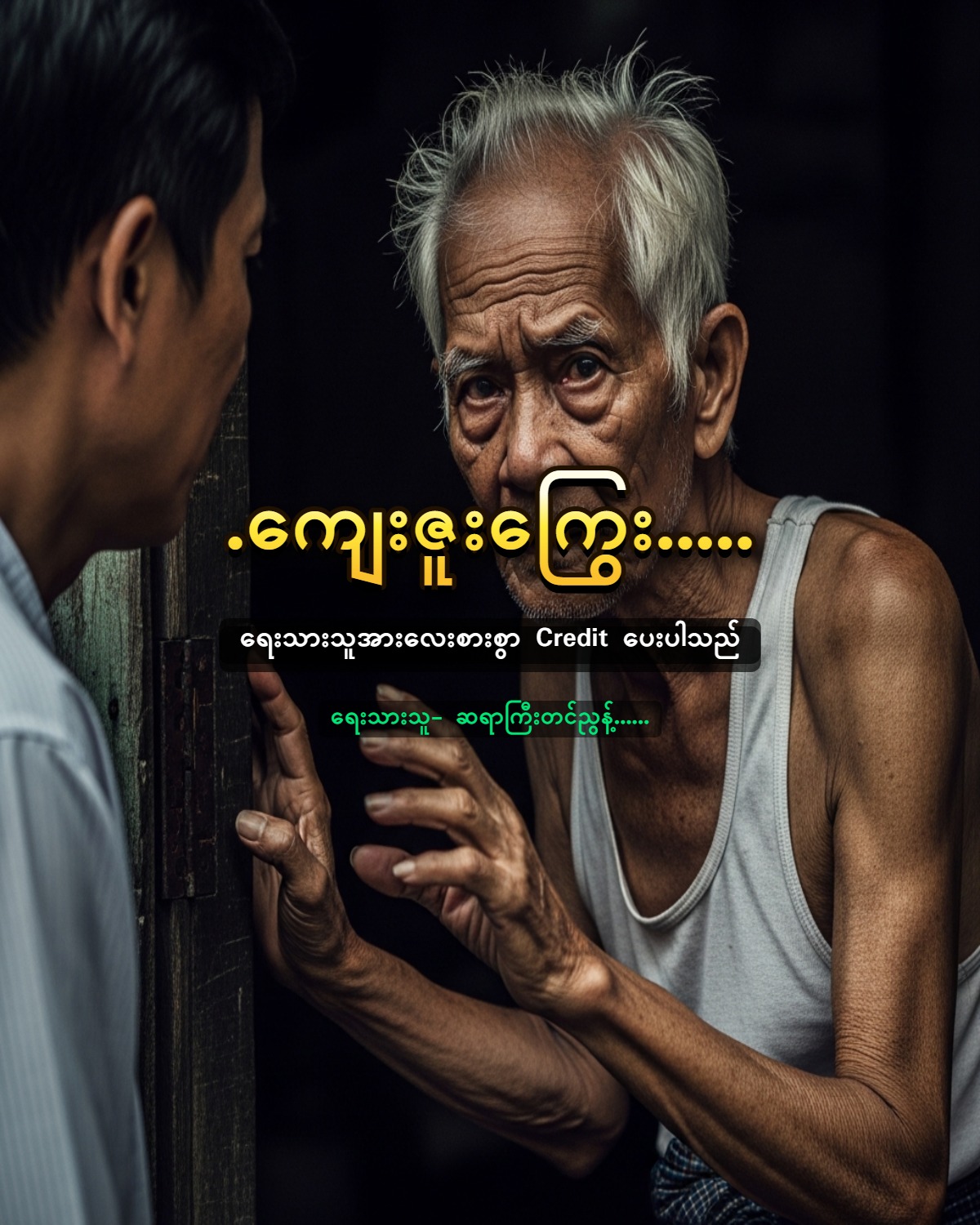 ကျွန်တော်ပေးသည့် ပိုက်ဆံကို မယူ။ “ကိုကြည် ရော့လေဗျာ” “အင်း … မယူချင်ပါဘူးကွာ” “ဘာဖြစ်လို့လဲကိုကြည်” “ငါ့လူရာ မင်းဘယ်လောက် ချမ်းသာနေသလဲဆိုတာ ငါမသိပါဘူး။ ဒါပေမဲ့ ငါ့ထက်တော့ အခြေအနေ ကောင်းပုံရပါတယ်။ မင်းနဲ့ငါ လွန်ခဲ့တဲ့ နှစ်ငါးဆယ်လောက်က ဆက်ဆံရေးမျိုးပဲ လိုချင်တယ်ကွာ။ ငါ့ကို သနားတဲ့ သဘောမျိုးနဲ့ ပေးတာမျိုး မလိုချင်ဘူး” “ခင်ဗျားကို သနားလို့ ပေးတာ မဟုတ်ပါဘူးဗျာ” “ကိုယ့်လူ … ဘာဖြစ်လို့ပဲဖြစ်ဖြစ် မပေးနဲ့။ ငါလက်မခံချင်ဘူး။ မင်းပေးတာကို ငါလက်ခံလိုက်ပြီးတော့ မင်းကို ကျေးဇူးတင်နေရတာမျိုး ငါစိတ်ထဲမှာ ဖြစ်မနေချင်ဘူး။