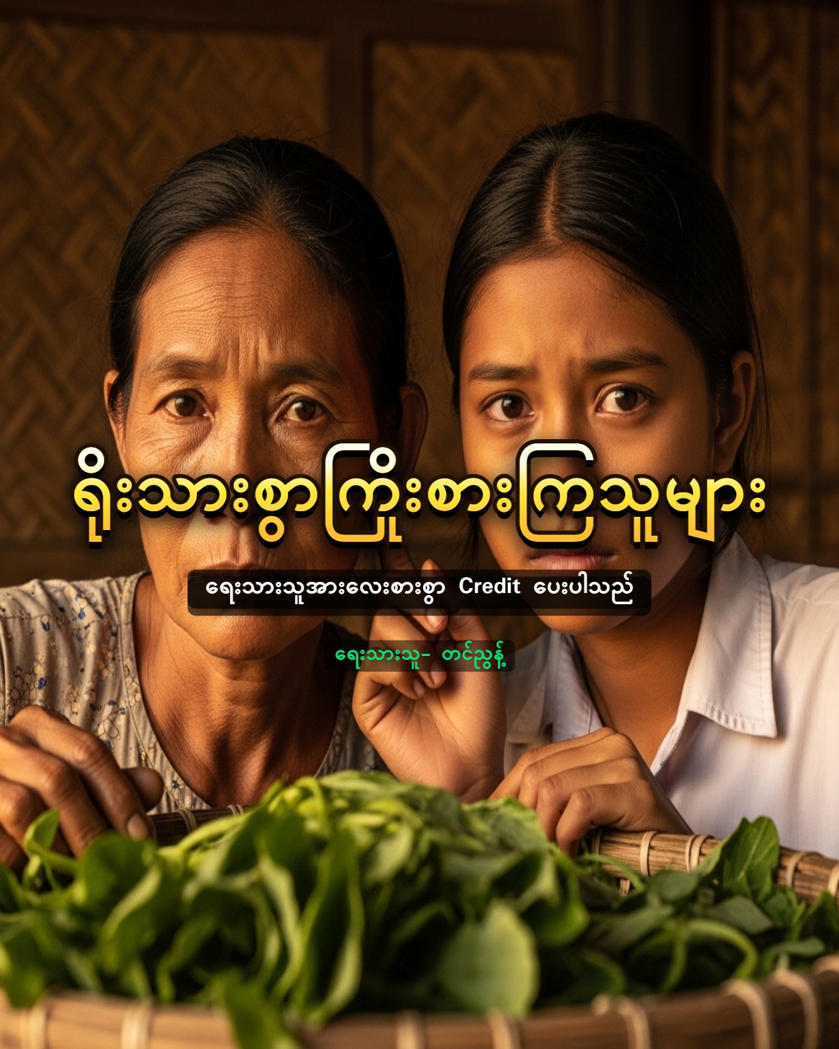 “ဟင် နားကပ်တွေ ဘယ်ရောက်ကုန်ပြီလဲ” “ရောင်းလိုက်ပြီ ကိုအောင်။ မရှိဝမ်းစာ … ရှိတန်ဆာတဲ့ရှင့် … နားကပ်လေးရောင်းလိုက်တယ်” “ဟာကွာ ကြည်ရယ် အဲဒါ ကိုယ့်ကိုတိုင်ပင်ရမှာပေါ့” “ဒီမှာ သမီးလေးအတွက် ကျောင်းလခ” သူက ပိုက်ဆံတစ်ထပ်ကို သမီးအားပေးလိုက်သည်။ “ကြည် … နားကပ်ပေါင်ပြီး ကျောင်းလခဖန်တီးလိုက်တာလား” “မဟုတ်ဘူး … မနက်စောစောထပြီး ခြေရင်းအိမ်က မပုလေးတို့နဲ့ ဈေးလိုက်သွားတယ်။ သူတို့ ဟင်းသီး ဟင်းရွက်တွေ သွားကောက်တာ အားရစရာကြီး။ ဈေးမှာပြန်ရောင်းတာ ထက်ဝက်လောက်ကို မြတ်တာ။ အဲဒါနဲ့ ကြည်လည်း နားကတ်ရောင်းပြီး အလုပ်သင်အဖြစ် တစ်နေ့ရင်းကြည့်လိုက်တာ။
