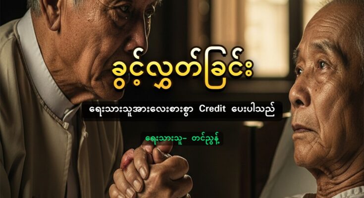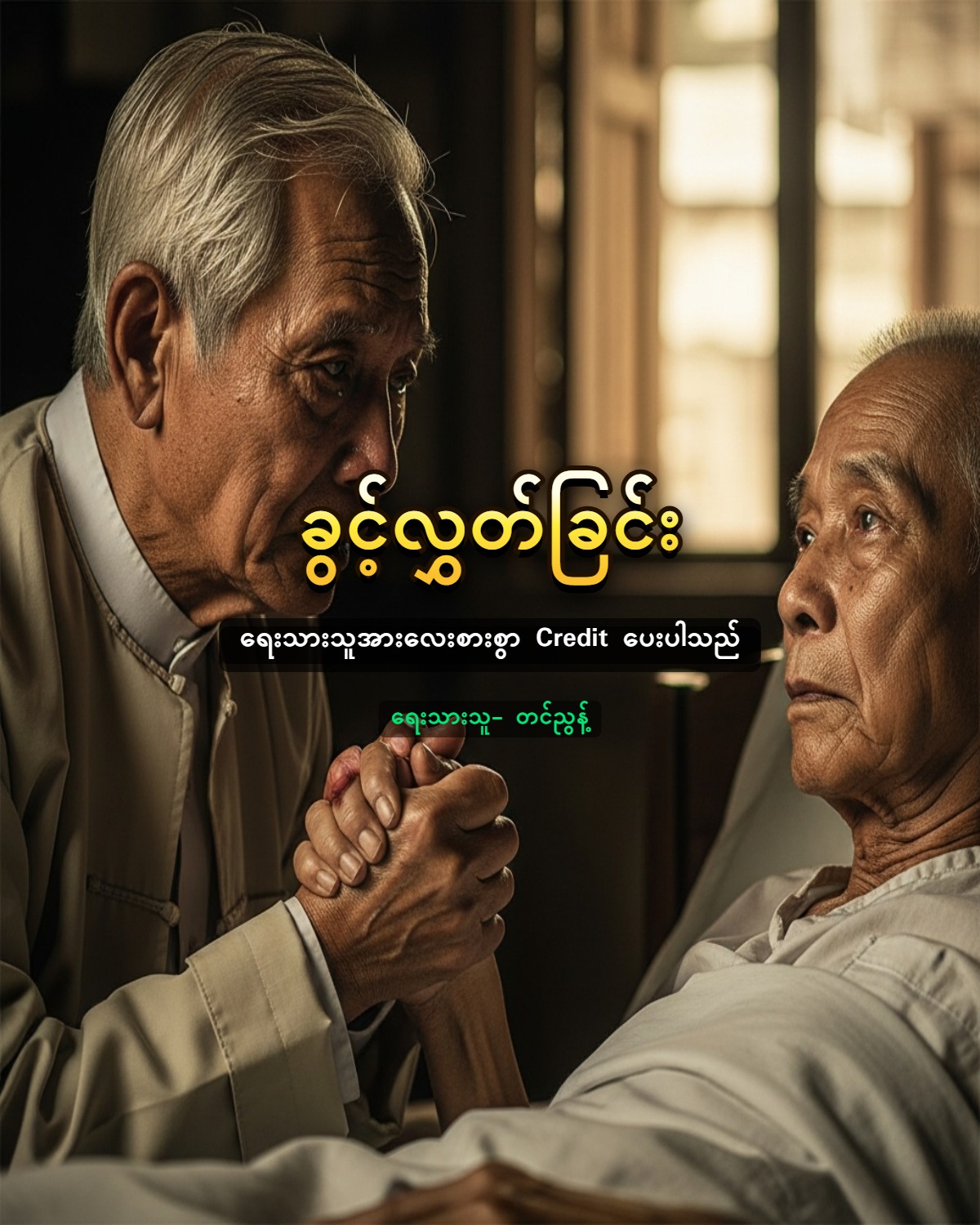 “သူငယ်ချင်း ငါ သွားမယ် … နေကောင်းအောင်နေနော်” “အေးပါ … အေးပါ” ဦးဘဆွေက အခန်းဝအရောက်တွင် ဦးမိုးအောင်က “ဘဆွေ” ဟုလှမ်းခေါ်လိုက်သဖြင့် သူကရပ်လိုက်ပြီး နောက်လှည့်ကြည့်လိုက်သည်။ “ဘာလဲ သူငယ်ချင်း” “အေး ငါသေမလား မသိဘူး … သေသွားရင်တော့ မင်းတောင်းပန်တာကို လက်ခံပြီး သေသွားတယ်လို့ မှတ်လိုက်ပါကွာ။ တကယ်လို့ မသေရင်တော့ မင်းမျက်နှာ ငါထပ်မမြင်ပါရစေနဲ့။ မင်းကို ငါဘယ်တော့မှ ခွင့်မလွတ်ဘူး” ဦးဘဆွေကလည်း တစ်လုံးချင်း ပြန်ပြောလိုက်သည်။ “အေးပါ … မင်းခွင့်မလွှတ်ပါနဲ့။ မင်းနေပြန်ကောင်းပါစေလို့ ငါဆုတောင်းပါတယ်။