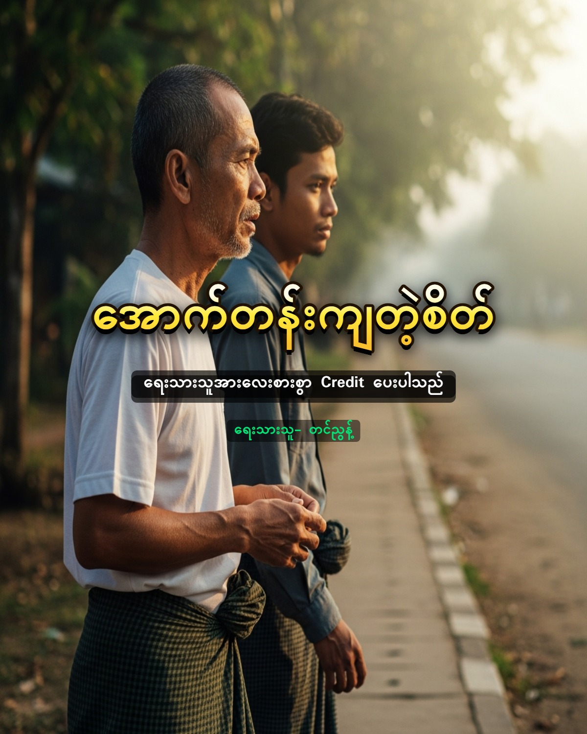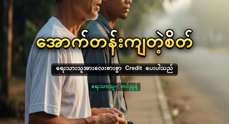 အဆိပ်သင့်တဲ့ပတ်ဝန်းကျင်မှာ နေထိုင်တာကြာရင် မတရားမှုတွေ၊ ခိုးမှုတွေ၊ ဖားယားမှုတွေဟာ အောင်မြင်မှုရဲ့ လမ်းစလို့ သတ်မှတ်ကုန်ကြရော။ အဲဒီပတ်ဝန်းကျင်မှာ ကြီးပြင်းရရင် အောက်တန်းကျစိတ်ကပဲ ဘဝရဲ့ ရှင်သန်ရေးနည်းဗျူဟာတစ်ခုလို့ အလိုလိုသတ်မှတ်လာကြတယ်” “ဆရာ ဟိုတစ်နေ့ကရေးတဲ့ အိမ်မြှောင်ဆောင်းပါးနဲ့ပြောရရင် အောက်တန်းကျတဲ့စိတ်ဆိုတာ အိမ်မြှောင် လက်တံက မြောက်အရပ်ကိုပြနေတာ သိသိကြီးနဲ့ တောင်ဘက်ကို မပြရကောင်းလားဆိုပြီး အိမ်မြှောင်ကို ရိုက်ခွဲတဲ့စိတ်ဓာတ်မျိုးပေါ့နော်ဆရာ” “ဆိုပါတော့” “ဒီနေ့ ဆရာနဲ့ လမ်းလျှောက်လိုက်ရတာ ကောင်းလိုက်တာဆရာ။ ဟိုမှာ ဆရာထိုင်နေကျ လက်ဖက်ရည်ဆိုင် ရောက်ပြီ။ ဘာစားမလဲဆရာ ဒီနေ့ ကျွန်တော် ကျွေးပါ့မယ်” “မင်းဈေးမှာ ဝက်သားဝယ်မှာ မဟုတ်လား။ ဝယ်ပြီး ပြန်တော့။ ငါဆက်လျှောက်ဦးမယ်။ သတ်မှတ် ခြေလှမ်း မပြည့်သေးဘူးကွ” “ဒါဆိုလည်း နေ့လယ်မှ ဝက်သားတစ်ခွက်လာပို့မယ်ဆရာရေ … သွားဦးမယ်” “အေးကွာ”