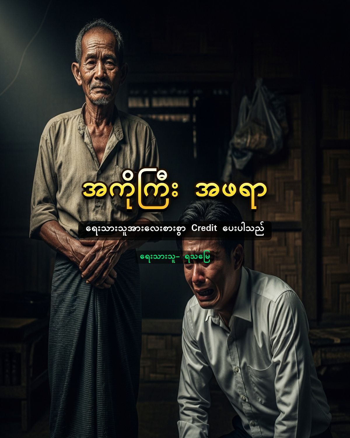 အဖေ နေမကောင်းဖြစ်တာ ၂ နှစ်လောက်ရှိပြီ။ ပိုက်ဆံတွေ နည်းတာ မဟုတ်ဘူး။ အခုကြည့်… အိမ်ကလည်း ယိုင်နဲ့နဲ့၊ အဖေ့ဆေးကုသမှုကလည်း ဘာမှရေရေရာရာ မရှိခဲ့ဘူးဆို။ ခင်ဗျား… အဲ့ဒီပိုက်ဆံတွေကို အရက်သောက်၊ လောင်းကစားလုပ်ပြီး ဖြုန်းပစ်လိုက်တာမလား!” ညီညီ့ရဲ့ စွပ်စွဲသံက အိမ်လေးထဲမှာ ဟိန်းထွက်နေတယ်။ ကိုထွန်းမြကတော့ ဘာမှပြန်မပြောပါဘူး။ သူ့ရဲ့ အက်ကွဲနေတဲ့ ခြေဖနောင့်တွေကိုသာ ငေးကြည့်ရင်း သက်ပြင်းချနေတယ်။ ”ညီလေးရယ်… မင်းအစ်ကိုကြီးက အဲ့လိုလူ မဟုတ်ပါဘူးကွာ” ဘေးနားက ဦးလေးဖြစ်သူက ဝင်ပြောပေမဲ့ ညီညီက လက်ကာပြတယ်။