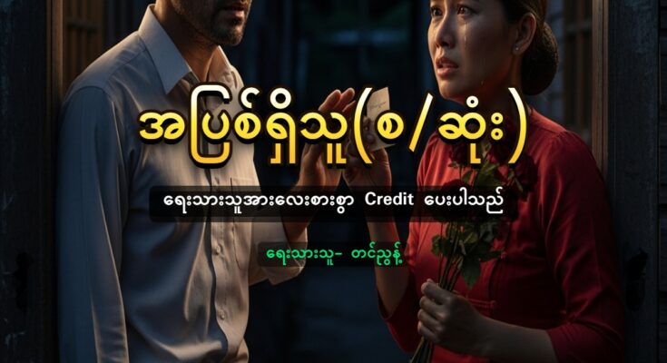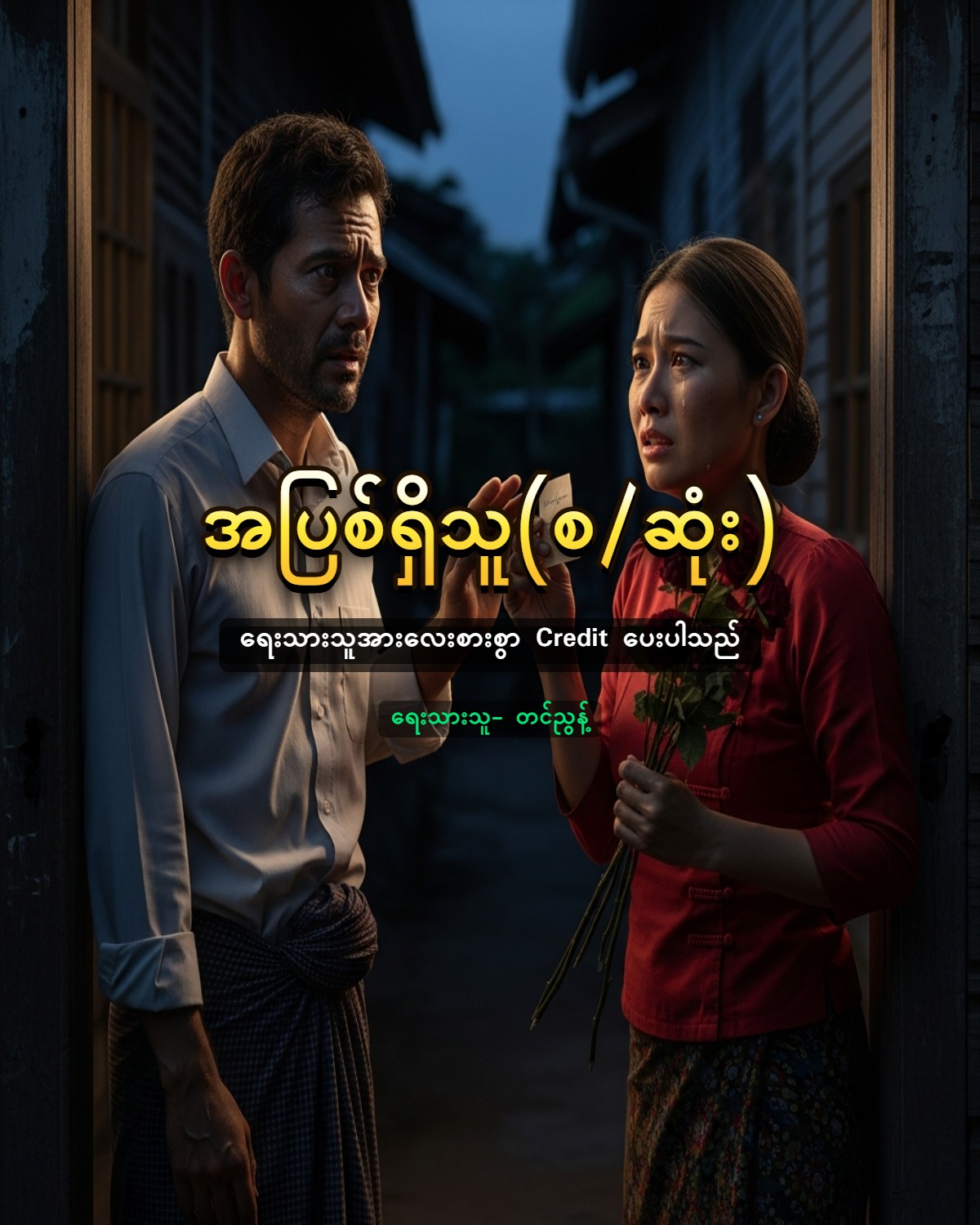 မောင့်မှာလည်း ရှိနိုင်တာပဲပေါ့။ ကဲပါ အိပ်ခါနီး တွေးစရာတွေဖြစ်အောင်မလုပ်နဲ့ အိပ်ကြမယ်” “မောင် … ဝေ့မှာ အပြစ်တွေရှိရင် အများကြီးမောင်မပြောချင်ရင်တောင် တစ်ချက်လောက် ပြောပါလားကွယ်” “ကဲပါကွာ … အိပ်မယ် … မနက်ကျမှ ဝေလိုချင်တဲ့ အဖြေကို မောင်ပြောမယ် ဟုတ်ပြီလား” ယောက်ျားဖြစ်သူက သူ့မိန်းမနဖူးလေးကို နမ်းလိုက်ပြီး အိပ်လိုက်သည်။ နောက်တစ်နေ့ နံနက်စောစော ယောက်ျားဖြစ်သူက ရုံးကို အစောကြီးထွက်သွားသည်။ သူက လမ်းထိပ်ရှိ ဈေးထဲမှ ပန်းဆိုင်ကို ဦးစွာဝင်သည်။ နှင်းဆီပန်း တစ်စည်းကိုဝယ်လိုက်ပြီးနောက် လှပစွာထုပ်ပိုးခိုင်းလိုက် သည်။