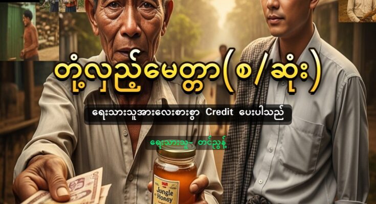 အဲဒါ ဦးကြူးထော်က တပည့်တော်ကို လှူလိုက်တယ်ဘုရား” “ဟုတ်လား … ကျုပ်လည်း အဲဒီဆေးတွေ သူ့ဆိုင်မှာရှိမှန်းသိတယ်။ သက်သက်မဝယ်တာ” “ဒီမှာပါဘုရား … ထိုးဆေးတွေရော … သောက်ဆေးတွေရော အကုန်ပါဘုရား။ အရှင်ဘုရား စောစောကုနိုင် တာပေါ့ဘုရား” “ကောင်းပါတယ်လေ … ဆေးမှူးလေးကို ခေါ်ခိုင်းပြီးထိုးလိုက်မယ်။ ဒီလိုဆိုတော့လည်း ကြူးထော်က ဘယ်ဆိုးလို့လဲ … ဒကာကြီး” “ဘုရား” “ခုတင်အောက်က ပုလင်းနှစ်လုံးထုတ်လိုက်စမ်းပါ” ကျွန်တော်က ခုတင်အောက်ကို ငုံ့ကြည့်ပြီး ပုလင်းနှစ်လုံးကို ထုတ်လိုက်သည်။ ပျားရည်ပုလင်းတွေဖြစ်သည်။ “အဲဒီ ပျားရည်တွေ ယူသွား … တောထဲက လာလှူထားတာ” “တင်ပါ့ဘုရား” ကျွန်တော်က ပျားရည်နှစ်ပုလင်းကိုဆွဲကာ ရွာထဲပြန်လာသည်။