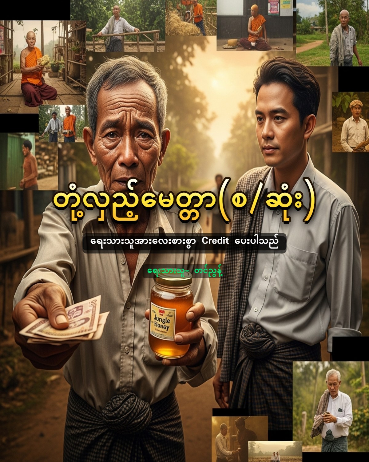 ဦးကြူးထော်ကုန်စုံဆိုင်ကိုဝင်သည်။ “ဦးလေး … ဦးလေး” “ဆရာ ဘယ်ကရောက်လာပြန်တာလဲ” “ဘုန်းကြီးကျောင်းကို ဆေးသွားပို့ရင်းနဲ့ ဆရာတော်က ဦးလေးအတွက် ပျားရည်တစ်လုံး ကျွန်တော့်အတွက် ပျားရည်တစ်လုံး ပေးလိုက်လို့ ဝင်ပေးတာ” “ဟင် … ဆရာတော်က ကျွန်တော့်ကို ပျားရည်ပေးတယ် ဟုတ်လား” “ဟုတ်တယ်လေ … ရော့ ဒီမှာ” ကျွန်တော်က ဦးကြူးထော်ကို ပျားရည်တစ်ပုလင်း ပေးလိုက်သည်။ “ဆရာရေ” “ခင်ဗျာ” “ကျွန်တော်တော့ သူတော်ကောင်းကို ပစ်မှားမိပြီနဲ့တူတယ်ဗျာ” “ဘာဖြစ်လို့လဲဗျ” “စီးပွားတွက် တွက်ပြီးတော့ ဆရာတော်ကို မကောင်းစိတ်ထားတာ မှားပြီဗျာ။ ဆရာတော်က ကျွန်တော့်ကို ဘယ်လိုမှ စိတ်မရှိပါလားနော်။ ကျွန်တော်မှားပြီဗျာ” “ကျွန်တော်ပြန်ဦးမယ်” “ဆရာ ခဏလောက်နေပါဦး” ဦးကြူးထော်က ဈေးဆိုင်ထဲကိုဝင်ပြီး ပိုက်ဆံတွေကို ကိုင်လာကာ ကျွန်တော့်လက်ထဲထည့်လိုက်သည်။ “ဘာလဲ ဦးလေး” “စောစောက ဆရာ့ဆီက ယူလိုက်တဲ့ဆေးဖိုးပါ” “ရပါတယ် လှူတယ်လို့ သဘောထားလိုက်ပါတယ်” “ကျွန်တော်လှူပါရစေဆရာရယ်” “ကောင်းတာပေါ့ဗျာ”