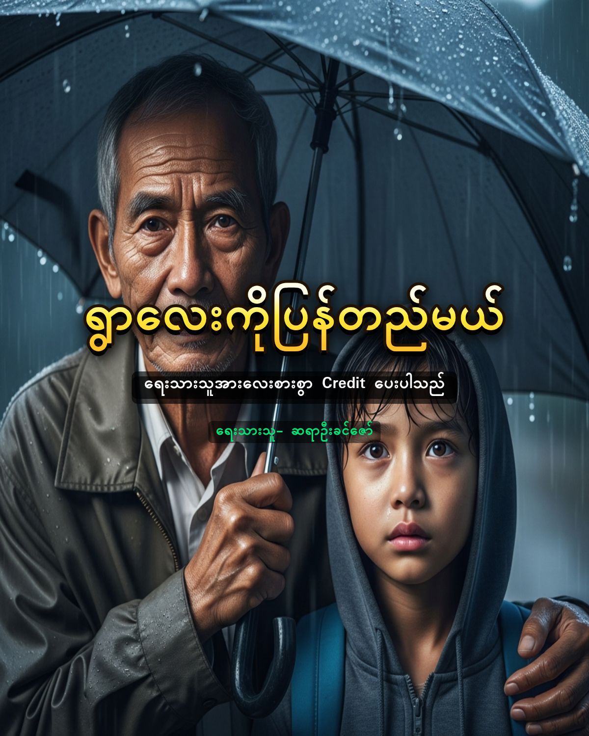 နိုဝင်ဘာလရဲ့ အအေးဒဏ်ကို ခံနိုင်ရည်မရှိလောက်ပါဘူး။ ကိုယ်ပေါ်က အင်္ကျီဟာ ရွှဲရွှဲစိုနေပြီး ကျောပိုးအိတ်လေးကို သူ့ရင်ခွင်ထဲမှာ အသက်ကယ်အင်္ကျီတစ်ထည်လို တင်းတင်းကြပ်ကြပ် ဖက်ထားရှာပါတယ်။ သူ့မှာ ထီးလည်းမပါ ပါဘူး။ လူကြီးလည်း မပါ ပါဘူး။၂၄ နာရီဖွင့်တဲ့ စတိုးဆိုင်ရဲ့ တံခါးဝကိုပဲ ငေးကြည့်နေပါတယ်။ ကျွန်တော့်အသက်က ၆၈ နှစ်ရှိပါပြီ။ မိုးရွာရင် ဒူးတွေက ကိုက်ပါတယ်။ အဓိပ္ပာယ်မရှိတာတွေကိုလည်း စိတ်မရှည်တတ်တော့ပါဘူး။ ဒါပေမဲ့ ကလေးတစ်ယောက် ဒုက္ခရောက်နေတာကို မြင်ရရင်တော့ ပိုပြီးတောင် စိတ်မရှည်တော့ပါဘူး။ ကားပေါ်မှာ ပါလာတဲ့ ထီးကို ကျွန်တော် ဖွင့်ဆောင်းလိုက်ပြီး သူ့ဆီလျှောက်သွားလိုက်ပါတယ်။ “ဟေ့ သားလေး၊ တစ်ယောက်ယောက် လာကြိုမှာကို စောင့်နေတာလား?” လို့ မေးလိုက်ပါတယ်။ သူ လန့်သွားပြီး ကြောက်လန့်တကြားနဲ့ ကြည့်ပါတယ်။ “မေမေက ဒီမှာပဲ နေပါတဲ့။ ဘယ်မှမသွားနဲ့တဲ့။