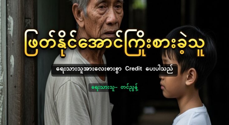 ကျွန်တော်သူ့ကိုနှုတ်ဆက်ပြီး အခန်းအပြင်ကိုထွက်လာသည်။ ကိုလှမြတ်၏သားဖြစ်သူ မောင်မောင်သွင်က အပြင်တွင်စောင့်နေသည်။ “ဦးကို ကျွန်တော်လိုက်ပို့မယ်” “ရပါတယ်ကွ … ငါသွားတတ်ပါတယ်” “ကျွန်တော် ဦးနဲ့စကားပြောစရာရှိလို့ပါ” “ဪ လိုက်ခဲ့လေ” ကျွန်တော်တို့ လမ်းထိပ်ရှိ လက်ဖက်ရည်ဆိုင်တစ်ဆိုင်တွင် အတူတူထိုင်ကြသည်။ “ဦးကို တစ်ခုလောက် မေးစရာရှိလို့” “ဘာများလဲကွ” “သက်ကြီးရွယ်အိုတွေကို စောင့်ရှောက်တဲ့ ဂေဟာကို ဦးသိလား မသိဘူး” “ဘာဖြစ်လို့လဲကွ” “အဖေ့ကို အဲဒီကို ပို့ထားချင်လို့” “ဘိုးဘွားရိပ်သာဆိုတာက ဆွေမျိုးသားချင်းလည်းမရှိ၊ ခိုကိုးရာမဲ့သူတွေကိုပဲ လက်ခံတာကွ။ သားသမီးတွေ ရှိနေတာကို လက်မခံဘူး” “ဟိုလေ ဦးရယ် … သက်ကြီးရွယ်အိုတွေကိုစောင့်ရှောက်တဲ့ဂေဟာမျိုးပြောတာပါ။ ပိုက်ဆံပေးဆိုလည်း ပေးပါ့မယ်” “အဲဒါမျိုးရှိတော့ ရှိတယ်ကွ။ ဒါပေမယ့် တစ်လပေးရတဲ့စရိတ်က ကြီးတယ်။