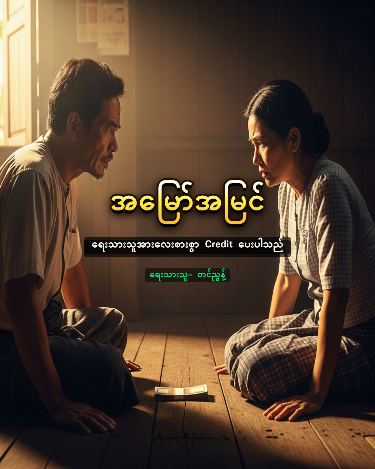ကျွန်မယောက်ျားက ကလေးတွေ ရှေ့ရေးကို စနစ်တကျစီစဉ်နေတာပါ။ သူ့သားတွေကို ရွာမှာပဲ အရိုးမထုတ်စေချင်ဘူး။ သူက ပညာတွေ တတ်အောင် သင်ခိုင်းပြီး နိုင်ငံခြားလွှတ်ဖို့အထိ စီစဉ်ထားတာပါ။ ညီမအနေနဲ့လည်း ရှင်ပြုမှာ တတ်နိုင် သလောက်လေးပဲ ကူညီပါရစေ” “နင့်သားတွေ မထည့်ဘူး မဟုတ်လား” “သူတို့ သင်တန်းသွားတက်မယ်လို့ ပြောထားတယ်လေ” “အေး … အဲဒါဆိုလည်း တစ်ပြားမှ ထည့်စရာမလိုဘူး။ နင့်သားနှစ်ယောက် မပါလို့ ငါတို့အလှူပွဲ မပျက် သွားဘူး သိလား” “သားကြီး … အဲဒီလို မပြောနဲ့လေ … မောင်နှမတွေအချင်းချင်း စိတ်ဝမ်းကွဲစေမယ်စကား မပြောရဘူး” “အဖေ … သမီး ငါးသိန်းတော့ထည့်ပါ့မယ်။ သိန်း ငါးဆယ်ဆိုတာကတော့ မဖြစ်နိုင်ပါဘူး။ သားတို့ ရှေ့ရေး အတွက် စုဆောင်းထားတာ အဲဒါပဲရှိလို့ပါ။