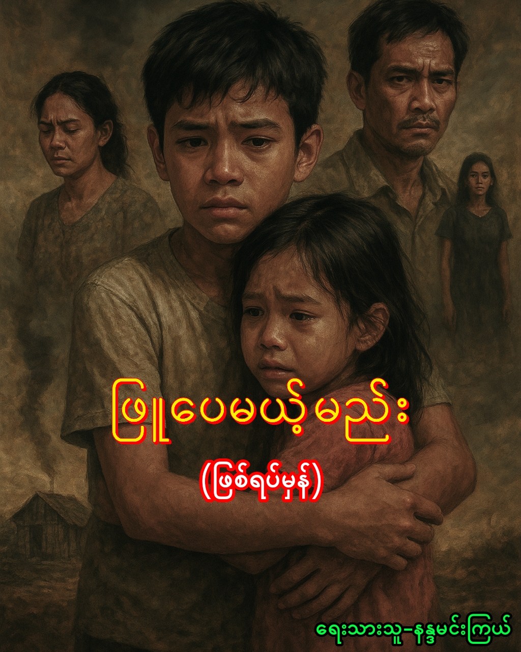 ကိုထိုက်တို့ညီအစ်ကို စိတ်ထဲမှာတော့ မေမေ အေးရှိရင် အားလုံးပြည့်စုံနေပြီပဲ။ မေမေအေးကလည်း တူလေးတွေကို မိတဆိုးလေးတွေမို့ သနားလွန်းကြောင်း ခုနစ်အိမ်ကြား ရှစ်အိမ်ကြား အော်အော်ပြောတတ်တာကိုး။ ”ကိုထိုက်တို့ ညီအစ္ကိုက သနားစရာ။ ဒါကြောင့် ကျွန်မတူတွေကို ကျွန်မက မျက်နှာအငယ်မခံဘူး။ကျွန်မအစ်မက မွေးထားပေမယ့် ကျွန်မသားတွေပဲ” ဒါကြောင့် မေမေအေးကို ကိုထိုက်တို့ အားကိုးပြီး ယုံကြည်ကြတယ်။ ချစ်ကြတယ်။ အခုတော့ မေမေအေးရဲ့ သေဘာက အမေမဆုံးခင်က သူတို့ကို ချေးငှားပေးထားတဲ့ နွားတွေနဲ့ငွေတွေကို မပေးချင်ကြတော့တဲ့ သေဘာ။ ဒီအကြံကို ကိုထိုက်တို့ အရင်ကမသိကြ။ ဒါပေမဲ့ မေမေ အေးတို့လင်မယား ပြောနေတာတွေကို ကိုထိုက် အိမ်ပေါ် ကေန နားနဲ့ဆတ်ဆတ် ကြားလိုက်ရတယ်ဆိုတာ မေမေ အေးတို့ သတိမထားလိုက်မိကြ။ အိမ်ပေါ်မှာ ဘယ္သူမွ မရှိဘူးအမှတ်နဲ့ မေမေအေးတို့လင်မယား ပြောနေခ့ဲကြ တာ။ပတ်ဝန်းကျင်ကလူတွေကတော့ မေမေအေးတို့ အကြောင်း မသိရှာသေး။ ကိုထိုက်တို့ကို ထိန်းရမယ့် တာဝန်ရှိလို့ ထိန်းထားတယ်ထင်နေကြတာပါ့။ အခန်း(၄) ရွာထိပ်က ကားလမ်းဘေးမှာ အေဖ့ကားအလာကို ကိုထိုက်တို့ညီအစ်ကိုနှစ်ယောက် ထိုင်စောင့်နေကြတယ်။