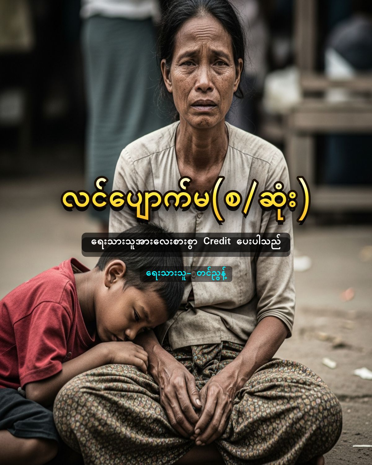 မိခင်က သားလေးလက်ကိုဆွဲလာပြီး ဈေးထဲကိုရောက်လာသည်။ ဈေးထဲတွင် လူတွေစည်ကားနေချိန်ဖြစ်သည်။ သားငယ်က မိခင်လက်ကိုဆွဲလာရင်းက “အမေ” “ဘာလဲသား” “သား … ဟို ကောက်ညှင်းပေါင်း စားချင်လို့” “သားရယ် အမေ့မှာ ပိုက်ဆံမရှိသေးဘူး။ မင်းအဖေက ဈေးထဲကိုလာခဲ့ ပိုက်ဆံပေးမယ်ဆိုလို့ လာခဲ့တာ။ မင်း အဖေကို ခုထိ ရှာမတွေ့သေးဘူး” “အမေ … ရေခဲချောင်း စားချင်တယ်” “သား မပူဆာနဲ့ကွယ် … အမေ မင်းအဖေကိုရှာနေတာ … သူ့ကိုတွေ့ရင် ဝယ်ကျွေးမယ်” မိခင်က သူ့သားကို လက်ဆွဲကာ သွားပြန်သည်။ သူက တစ်နေရာတွင် “ဒီမှာရှင် … ကုန်ထမ်းတဲ့ ကိုလှမောင်ကို တွေ့မိကြသလား” “လှမောင်လား … ပြန်လာလိမ့်မယ် … ငါးတန်းကို ငါးတောင်းတွေ သွားပို့နေတယ်” သူတို့သားအမိ အဆောက်အအုံတစ်ခု၏ လှေကားတွင်ထိုင်နေကြသည်။