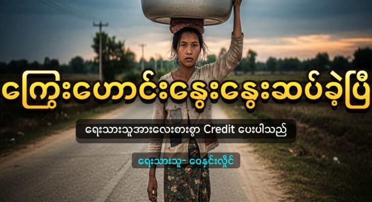 အားလုံးရေကြည့်သော် ရောင်းရသည့်ငွေပမာဏကြောင့် ကြာဥ အပျော်ကြီးပျော်ရလေပြီ။ “အမေရေ့ သမီးတော့ ငါးသောင်းနဲ့ ရှစ်ထောင်ရတယ်၊ ဒီပိုက်ဆံလောက်နဲ့ဆိုရင် အဖေနဲ့အမေအတွက်ဆောင်းတွင်းမှာခြုံဖို့ ဂွမ်းစောင်တစ်ထည်တော့ဝယ်လို့ရမှာပဲ ” မျှစ်ရောင်းလာသမျှကာလပတ်လုံး ယခုကဲ့သို့ငွေများများမရဖူး၍ ဤဇာတ်ပွဲကိုပင် ကြာဥကျေးဇူးတင်နေမိတော့သည်။ (၄) ညက တစ်ညလုံးမအိပ်ရ၍ ကြာဥမျက်ကွင်းနှစ်ဖက်မှာ ချောင်၍နေလေ၏။ လူကလည်း ငိုက်မြည်းစပြုလာပြီ။ အရှေ့တစ်ရွာကျော်ကိုဖြတ်ရဦးမည်မို့ ငိုက်မြည်းစိတ်ကိုဖျောက်ကာ ထဘီကိုတိုတိုနှင့်မြဲအောင်ပြင်ဝတ်ပြီး ဇလားကြီးတကားကားဖြင့် ဆက်လျှောက်ခဲ့သည်။ တစ်ရွာလွန်ပြီး ညာဘက်လမ်းခွဲဘက်သို့ဦးတည်ခဲ့ရာ ကြာဥသွားလိုသည့်ဆိုင်ရောက်၏။ နံနက်စောစောပေမို့ ဆိုင်မှာ ယခုမှဖွင့်မည်ပြုနေဆဲ။ ” ဘာဝယ်မလို့လဲကလေးမ ” ဆိုင်တံခါးများလိုက်လံဖွင့်နေသော ဆိုင်ရှင်ဦးလေးကြီးမှမေးသည်။ ” ဦးကြီး သမီးကိုလေ ဂွမ်းစောင်ငါးသောင်းတန်ဝန်းကျင်ထဲကပြပေးပါလား ” ” အေအေ ပြပေးမယ်၊ ခဏစောင့်နော် ” ” ဟုတ်ကဲ့ ဦးကြီး ” တံခါးများဖွင့်ပြီးလျှင်ပဲ ဆိုင်ရှင်ဦးလေးကြီးမှ ဂွမ်းစောင်ခပ်ထူထူတစ်ထည်ထုတ်ယူလာ၏။ ” ရော့ကလေးမ ဒါလေးသောင်းငါးထောင်” ကြာဥ ဂွမ်းစောင်အနားစကိုကိုင်ကာ အထူအပါးကို စမ်းကြည့်သည်။ “ဒါလေးယူမယ်ဦးကြီး ဒါလောက်ဆိုနွေးမှာပါ၊ ရော့ လေးသောင်းငါးထောင် ” ကုန်သည့်ငွေပမာဏကို ကြာဥမမြင်။