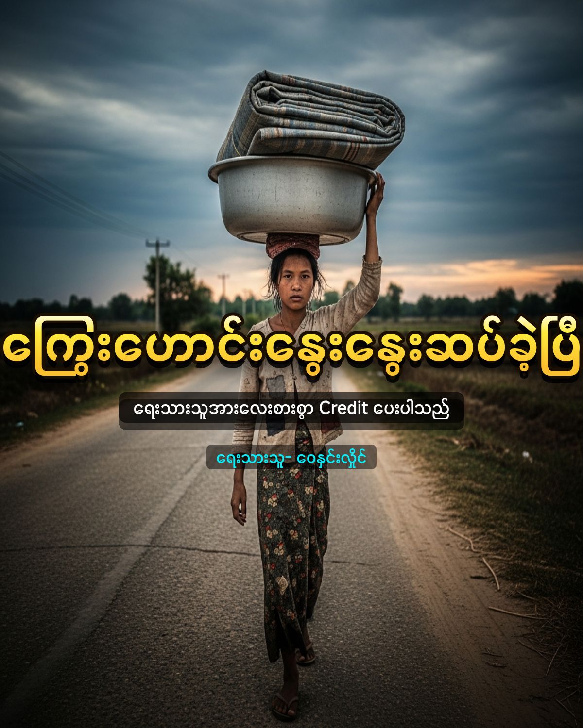 လမင်းက ဝင်းပစွာထိန်လင်းနေ၏။ လေနှင်ရာလွင့်နေသည့် တိမ်စိုင်တိမ်ခဲတို့သည်လည်း မခိုင့်တခိုင်ပြတင်းဝမြင်ကွင်းထဲ၌ တရွေ့ရွေ့။ ကောင်းကင်တစ်ခွင်ရှိ ကြယ်များကလည်း ဟိုတစ်စုသည်တစ်စု။ ညနေကပင် မိုးသည်းထန်စွာရွာထား၍ ယခုမူကား မိုးသားကင်းစင်သွားကာ ညင်ညင်သာသာတိုးဝှေ့တိုက်ခတ်လာသည့် မုတ်သုံလေအကြွင်းအကျန်များက အေးစက်စက်နှင့်။ အိပ်မောကျနေသည့် အဖေနှင့်အမေမှာတော့ တုပ်တုပ်မျှမလှုပ်။ လေအေးတစိမ့်စိမ့်နှင့် အိပ်ကောင်းနေကြလေခြင်း။ ဘယ်သူတွေဘယ်လိုပင် အိပ်ကောင်းစေဦးတော့ တစ်နေ့ဝမ်းစာတစ်နေ့ရှာနေရသူအဖို့တော့ ကောင်းစွာအိပ်၍မပျော်နိုင်။ အလုပ်မဖြစ် မကိုင်မဖြစ်သည့် မိုးရာသီကိုလည်းမုန်းလှပြီ။ ဝါဆိုဝါခေါင်ရေဖောင်ဖောင်ဆိုသည့်စကားကိုပင် ပြောင်းပစ်ချင်လိုက်တော့သည်။