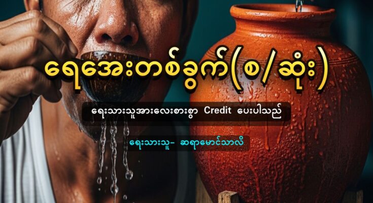 အိပ်ပါစေလေ တစ်သက်လုံး။ ကပ်ာကသီ ရေခဲသေတ္တာ အား ဖွင့်ပြီး၊အထဲကရေပုလင်းအားဆွဲယူပြီး မော့ပြီးသောက်လိုက်တော့။ အော…ကြံကြံဖန်ဖန်ကွာ၊ ဘယ်သူများရေနွေးကျိုပြီးရေခဲသေတ္တာ ထဲလာပြီးထည့်ထားလေသလဲ။ ပူလိုက်ထာကွာ၊လျှာတောင်အဖုပေါက် လေမလား ထင်ရတယ်။ အိပ်မှုန်စုန်ပွားဖြင့်တွေးမိပါသည်။ အလိုက္သိတဲ့ မက္ဒန္သာလိက၊ အုန်းရေမှုတ်ကလေးဖြင့်၊သောက်ရေ တစ်ခွက်အားကမ်းပေးပါသည်။ ရေဆာဆာဖြင့်အရိုးလေးကကိုင်ပြီး မော့ပြီးသောက်ချလိုက် တော့…. ။ ဂွတ်…ဂွတ်…ဂွတ်… အလာ လား ရင်ထဲအေးလိုသွားပါလေရဲ့ဗျာ။ အော်…မက်ဒန်သာလိ၊အလိုက်တသိဖြင့် သောက်ရေ သဲစိမ့်အိုးလေးဝယ်ထား မိပေလို့ဗျာ။ သည်လိုမှမဟုတ်ရင်တော့၊ အမြတ်တနိုးဖြင့်ဈေးကြီးပေးပြီး၊ဝယ်ယူ ထားသော၊ရေခဲသေတ္တာထဲက သောက်ရေကိုသာမျှော်နေရမယ်ဆိုရင် တော့၊ ရေအေးအေးတစ်ခွက်ကို၊ မောင်သာလိအချိန်မှန်စွာဘယ်တော့များသောက်ရမှာပါလိမ့်။ အတွေးလွန်လို့သွားမိပါပြီ။