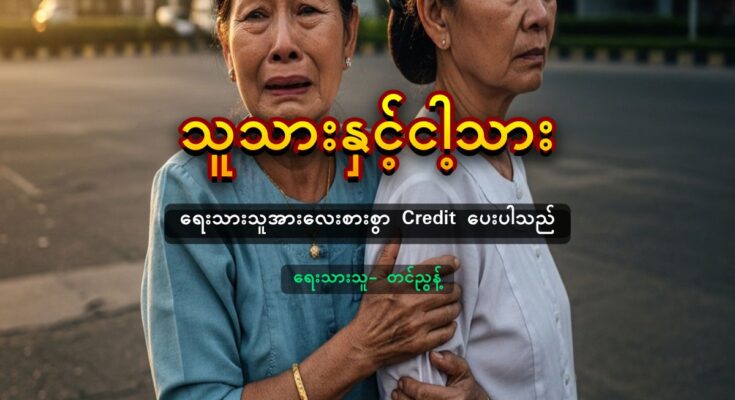 သူ့ ကောင်မလေးကလည်း ကုမ္ပဏီတစ်ခုမှာ မန်နေဂျာပဲ … အတော်ပဲ ကြည့်ကိုလည်း ဖိတ်ရဦးမယ်” “စိန်စိန်တို့ကတော့ ကံကောင်းပြီးရင်း ကံကောင်းနေတော့တာပဲ” ထိုစဉ် တက္ကစီကားတစ်စီးက သူတို့ရှေ့ကို ထိုးရပ်လိုက်သည်။ “မေမေ … သားနောက်ကျသွားတယ် … လမ်းတွေ ပိတ်နေလို့” “ရပါတယ် … မေမေက ဒီမှာ နင့်ကြီးကြီးစိန်နဲ့ ပြန်တွေ့ပြီး စကားကောင်းနေတာ … သားမှတ်မိလား … သေသေချာချာကြည့်စမ်း” “အို မှတ်မိတာပေါ့ … ကြီးကြီးစိန်ပဲ … ကိုမင်းသန့်ရော … မတွေ့တာကြာပြီ” “ မင်းကိုကိုက ဘွဲ့တွေလည်းရ၊ အလုပ်အကိုင်ကလည်းကောင်း၊ သူဌေးဖြစ်နေတယ်ကွ … ကိုထက်လည်း လူကြီးကြီးဖြစ်လာပြီပဲ … ဒါ သားမောင်းတဲ့ကားလား … ကိုယ်ပိုင်လား အငှားလား” “စိန်စိန်ရေ … ဒါ သားကြီးက စုဆောင်းပြီးဝယ်ထားတာ …ခုလည်း ကြည့်ကို ချပေးထားခဲ့ပြီး လူရလို့ မောင်းပို့ပေးပြီးမှ ပြန်လာတာ” “ဟုတ်တယ်ကြီးကြီး … သားတို့နဲ့ တစ်ခါတည်း လိုက်ခဲ့ပါလား …
