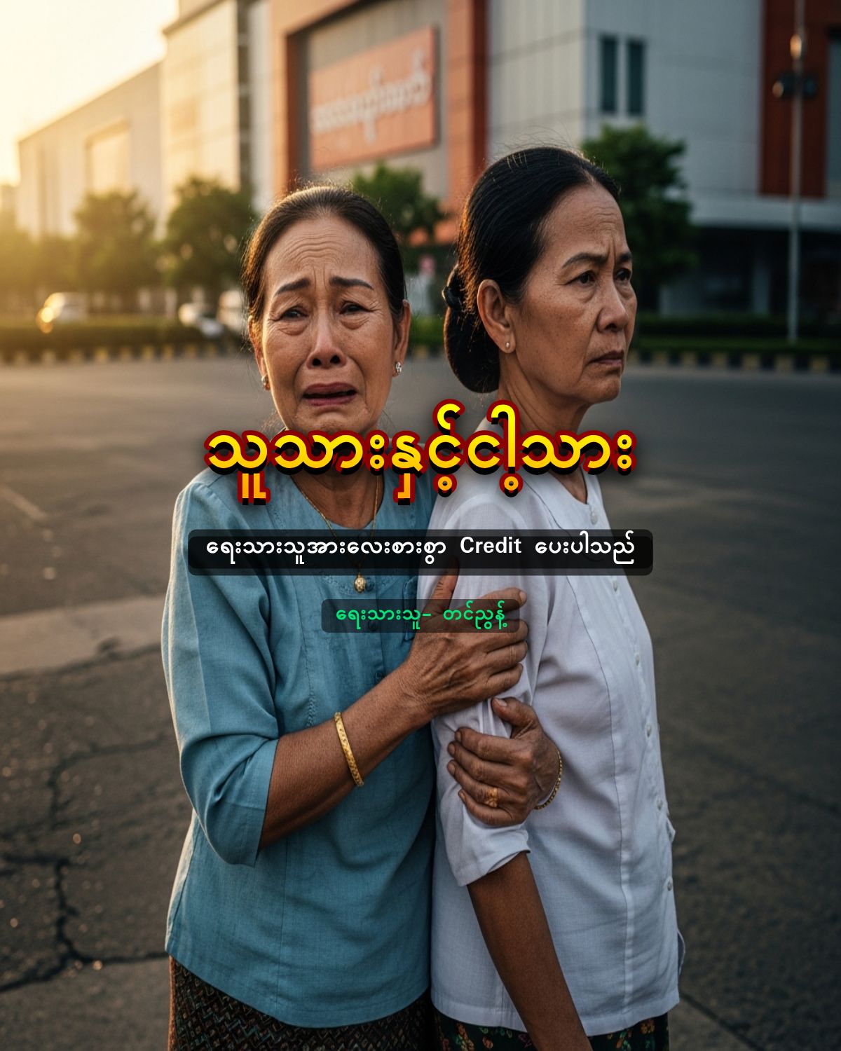 ဒီမှာ ပို့စရာရှိနေတာကို” “သားရယ် ပို့စရာရှိတာ သွားပို့ရောပေါ့ … မေမေ့ကို ဘာလို့ လာကြိုနေသေးလဲ” “မေမေတို့ကတစ်မျိုး … လာကြိုဆိုပြီး ဖုန်းနဲ့ တဂျီဂျီပြော … မလာရင် ချက်ချင်းကြီးပဲ လဲသေတော့မလို” “အို ဘယ်လိုပြောလိုက်တာလဲ” ဒေါ်ကြည်က အံ့အားသင့်သွားသည်။ ဒေါ်စိန်စိန်က “သားတို့ အရေးကြီးနေရင်လည်း သွားပါတော့ကွယ်” “အဲဒါဆို အစကတည်းက ဘာဖြစ်လို့ ဖုန်းနဲ့လှမ်းပြီးတော့ ပြဿနာရှာနေသေးလဲ … မလိုက်ဘူးလား … လိုက်မလား” “မလိုက်တော့ဘူး … သွားတော့” “ဒါဆိုလဲ သွားမယ် … ပြန်ချင်တဲ့ အချိန် တက္ကစီငှားပြီး ပြန်ခဲ့ … စောစောကတည်း တက္ကစီနဲ့ ပြန်မယ်ဆိုလည်း ပြီးတာပဲ” သူက ကားကို မောင်းထွက်သွားသည်။ ဒေါ်စိန်စိန်၏ မျက်လုံးတွေက မျက်ရည်တွေနှင့် ဝဲနေသည်။