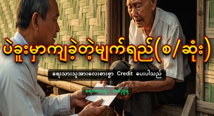 ပိန်ပိန်ပါးပါး ခါးကုန်းနေသော အဘိုးကြီးဖြစ်နေပြီ။ အသက် ကလည်း ၉၁ နှစ်ရှိပြီကိုး။ “ကျွန်တော့်ကို ခုလိုသတိတရနဲ့ လာတွေ့တာ ဝမ်းသာလိုက်တာ။ ဘယ်သူမှ သိပ်ပြီး အလေးထား ဂရုစိုက်ကြ တော့တာမဟုတ်ဘူး။ အိုပြီလေ” ဟုပြောကာ ဆရာက ငိုပါတော့သည်။ ကျွန်တော်လည်း ရင်ထဲမကောင်း လွန်းသဖြင့် မျက်ရည်ဝဲလာမိသည်။ သူ့တပည့်ဖြစ်ခဲ့ဖူးသော အသက် ၇၀ ကျွန်တော်က ၉၁ နှစ် သူ့ကို ခရစ်ယာန်ဘာသာဝင်ဖြစ်သော်လည်း ထိခြင်း ငါးပါးဖြင့် ကန်တော့ခဲ့ပါသည်။ သူကလည်း ဆုပေးပါသည်။ “ကောင်းတာလုပ်တဲ့သူအတွက် ကောင်းကျိုးတွေဖြစ်ပါစေ” ကျွန်တော်က ဆရာ့အတွက် ကန်တော့လိုက်သော စာအိတ်အပြင်၊ ကျွန်တော့်အတွက် ကန်တော့ လိုက်သော ကန်တော့ငွေ စာအိတ်ကိုပါ ဆရာ့လက်ထဲထည့်ပြီး ကန်တော့ပါသည်။ ဆရာက မျက်ရည်တွေဝဲပြီး လက်ခံသည်။ အိမ်အိုလေးထဲတွင် ဆရာအိုတစ်ဦးတည်း လှေကားထက်တွင်ထိုင်ပြီး လက်ပြကာ ကျန်ခဲ့သည်။ “နောက်လည်း ကြုံရင် ဝင်ပါနော်” ကျွန်တော် ရင်ထဲမကောင်းစွာဖြင့် ဆရာ့ကို ကျောခိုင်းခဲ့ပါသည်။ ကျွန်တော်တို့ နောက်တစ်ကြိမ် ပြန်ဆုံဖို့ဆိုတာ မသေချာ။ ၉၁ ထက်စောပြီး ၇၀ လည်း လောကကြီးထဲက ဦးစွာ ထွက်သွားနိုင်သည်။ ကျွန်တော် တိုက်ပုံထဲက လက်ကိုင်ပဝါကို ထုတ်လိုက်သည်။ ချွေးသုတ်သလိုနှင့် မျက်ရည်တွေကိုပါ သုတ်လိုက်သည်။ ဆရာအိုကို ကျွန်တော် ဝင်းတံခါးကြီးရောက်မှ ပြန်လှည့်ကြည့်လိုက်သည်။ လှေကားတွင်ထိုင်ပြီး ကျွန်တော့်ကို လက်ပြနေသည်။